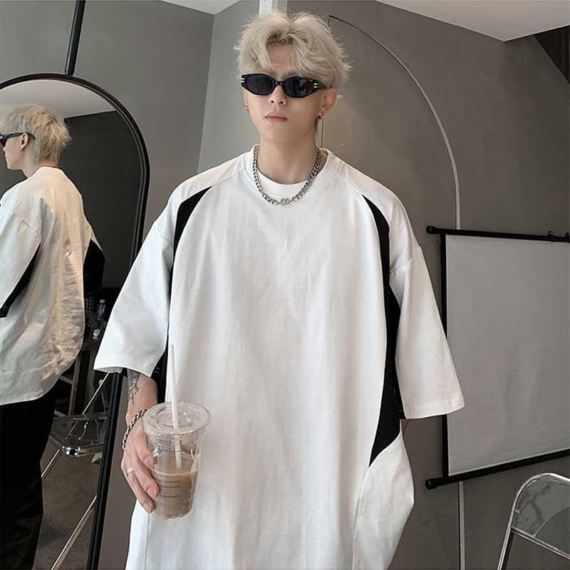 圆领短袖t恤男夏季美式复古百搭拼接撞色高级设计感痞帅休闲上衣