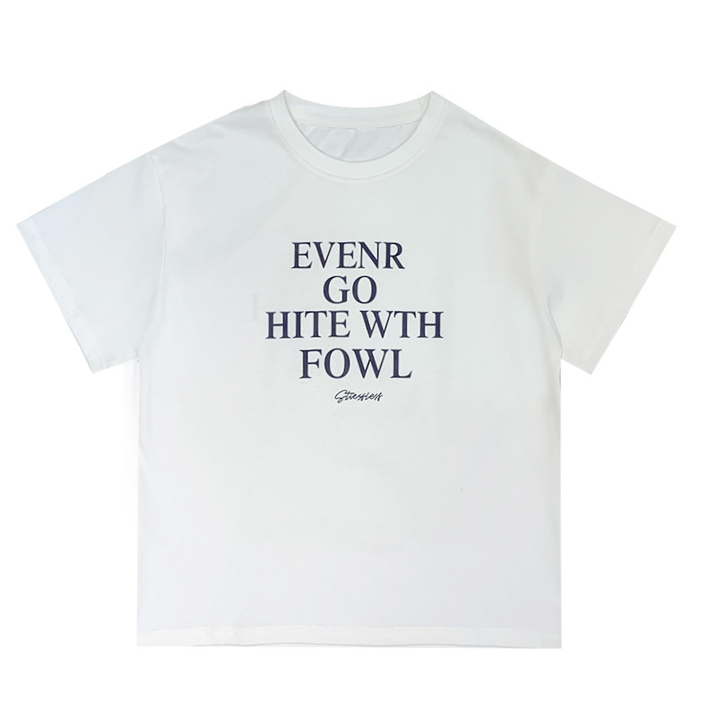 美式字母印花大版T恤!春夏学院风撞色领口宽松中长款休闲短袖女