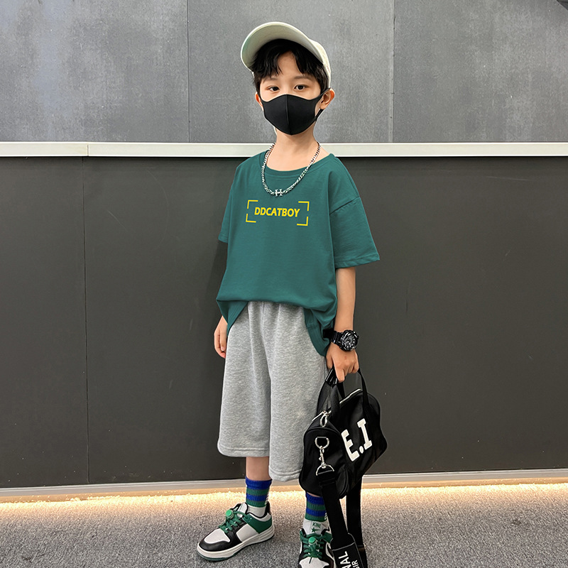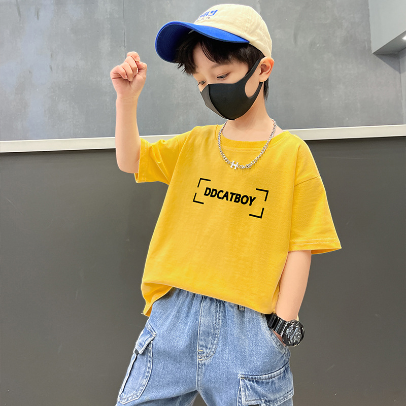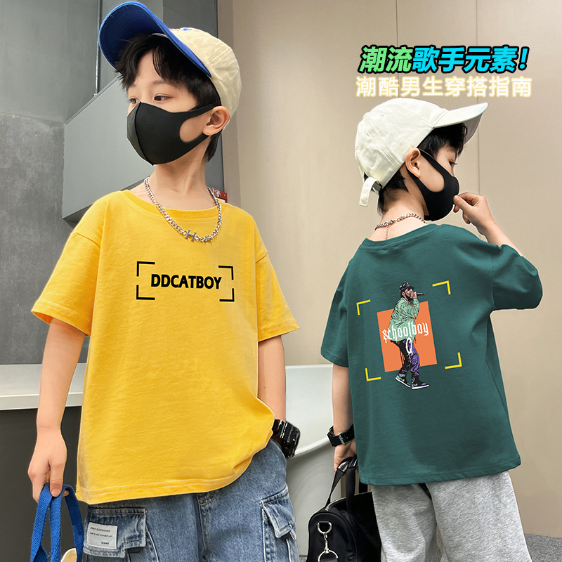 男童短袖夏季纯棉新款儿童半袖上衣洋气中小童酷帅宽松休闲T恤潮