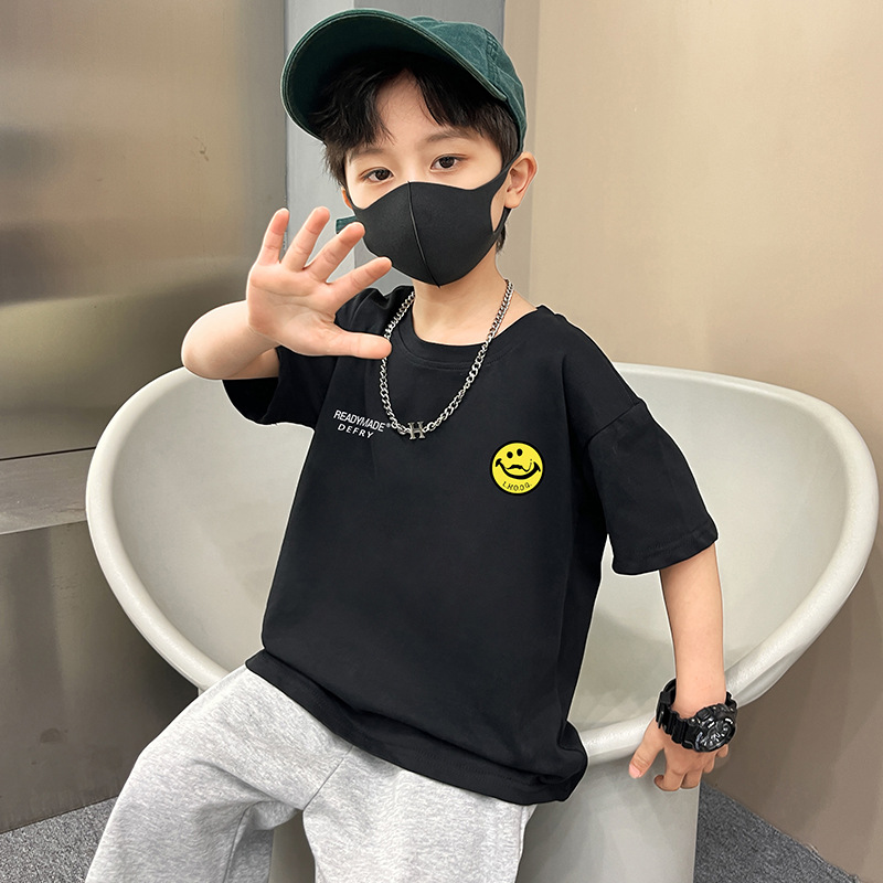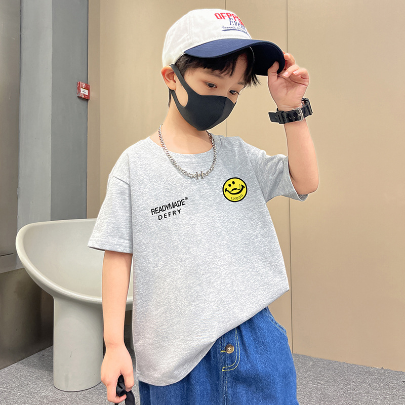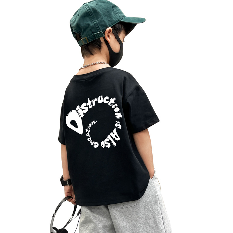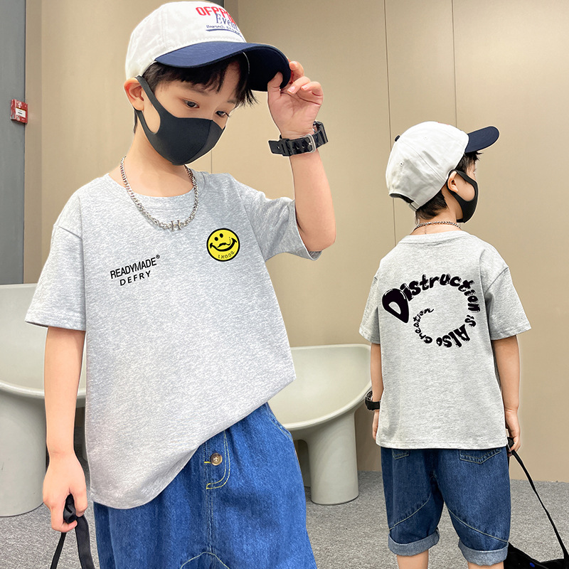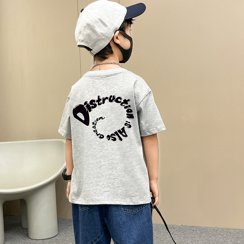 男童短袖纯棉夏季新款字母印花儿童男孩运动休闲宽松圆领T恤INS潮