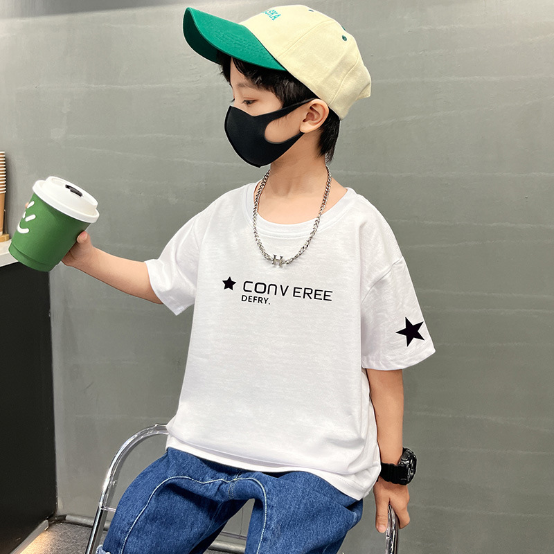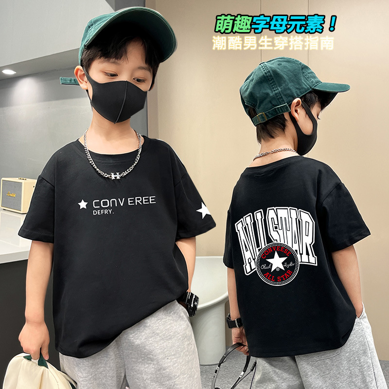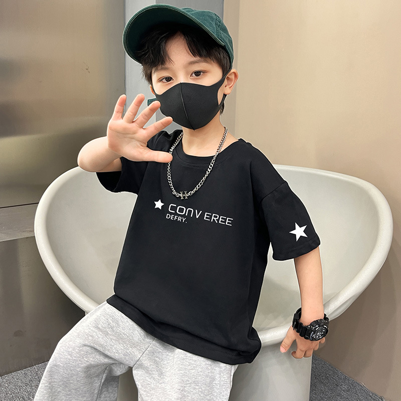 童装男童夏装短袖T恤新款宽松卡通印花儿童男孩夏季服小童INS潮