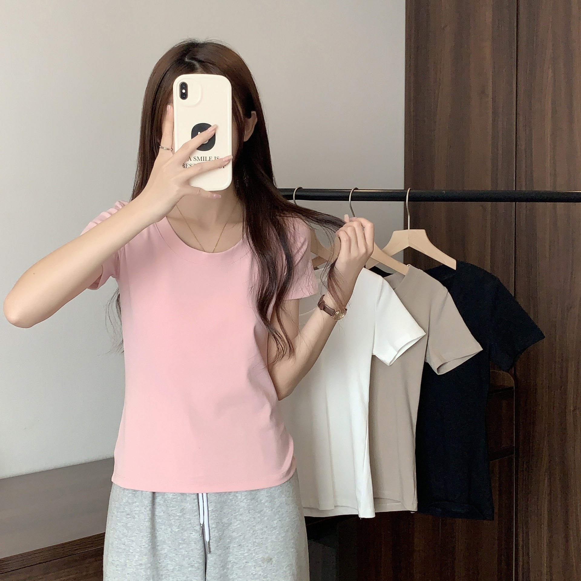 正肩短袖t恤女夏季设计感小个子体恤修身短款上衣