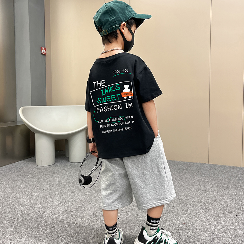 实拍男童短袖夏季新款宽松休闲圆领儿童宝宝半袖上衣中小童T恤潮