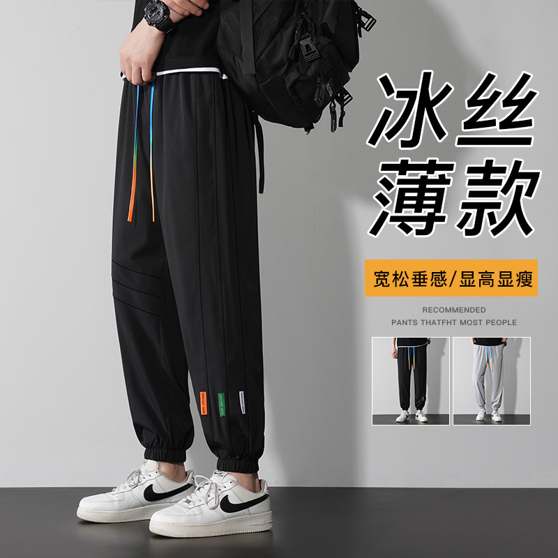 裤子男士夏季薄款冰丝裤工装宽松潮牌高档耐磨运动休闲裤男生卫裤