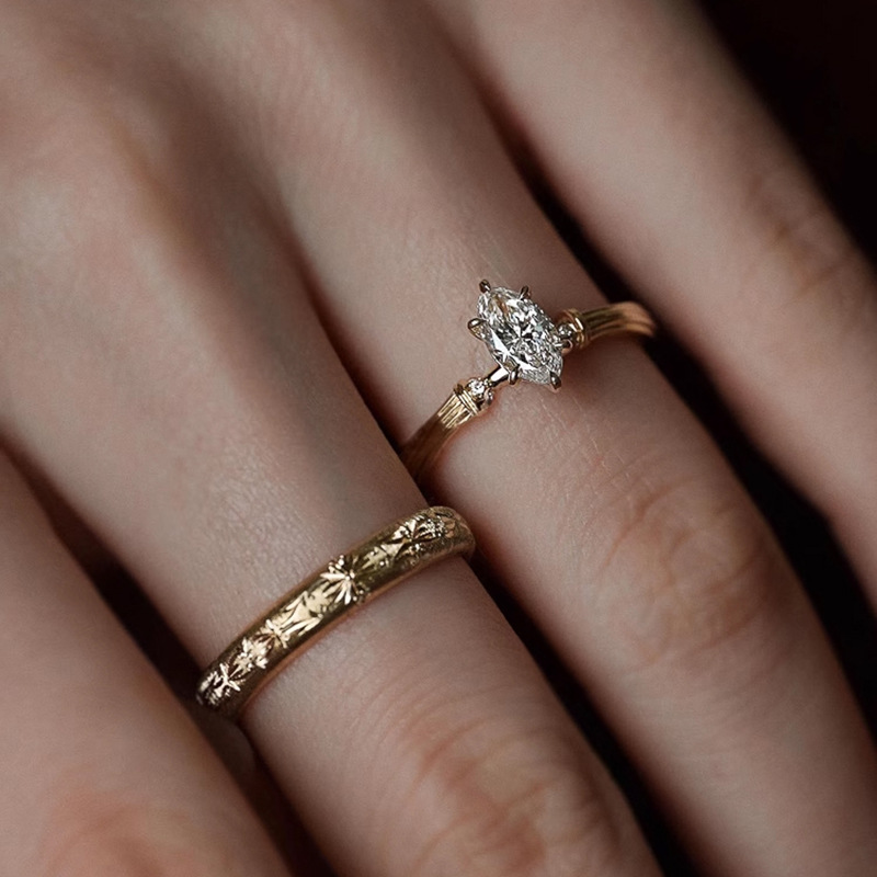 小红书爆款拉丝雕花素圈戒指2025新款马眼钻菱形精致指环