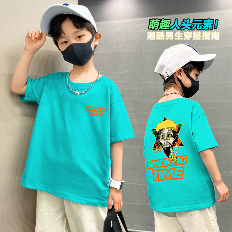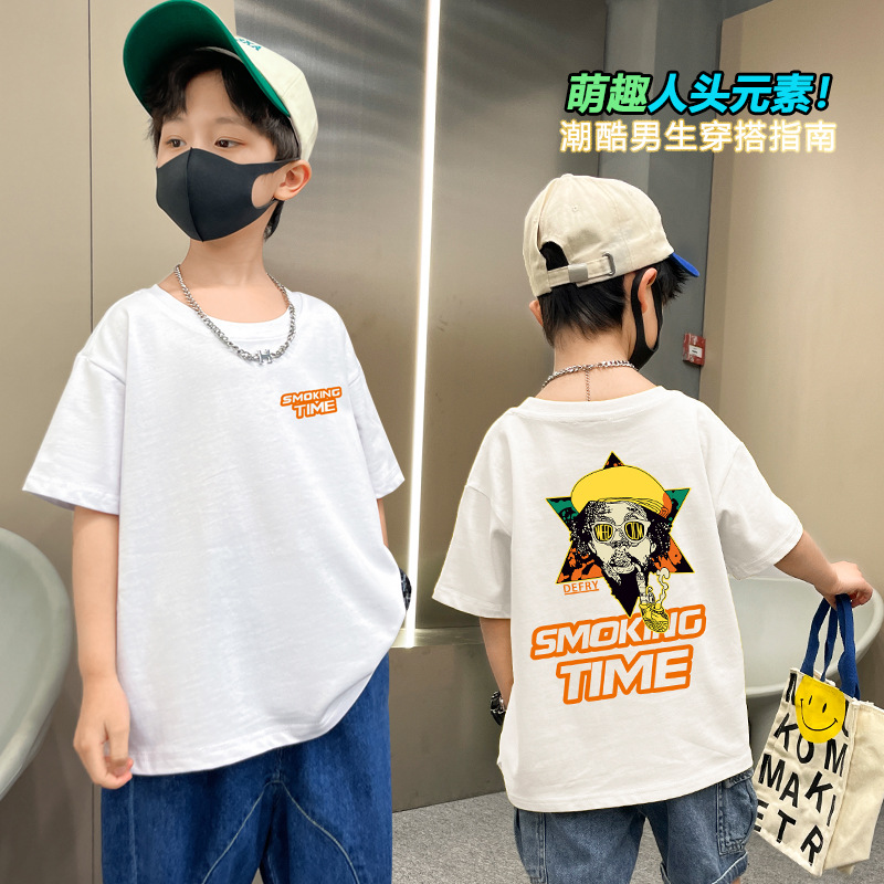 实拍男女童短袖t恤纯棉夏季新款前后印花儿童宝宝半袖上衣中小童