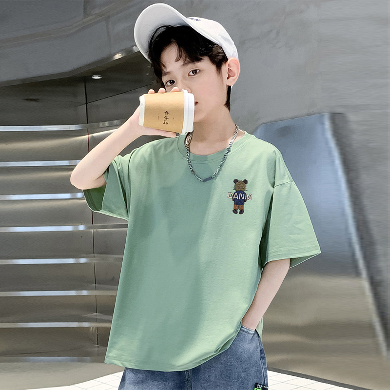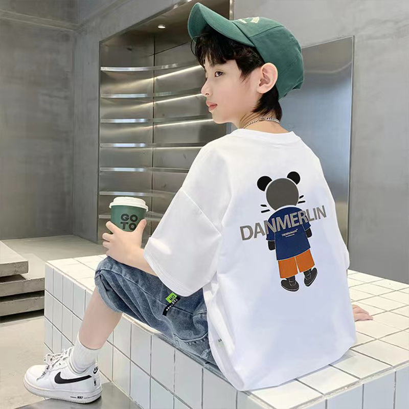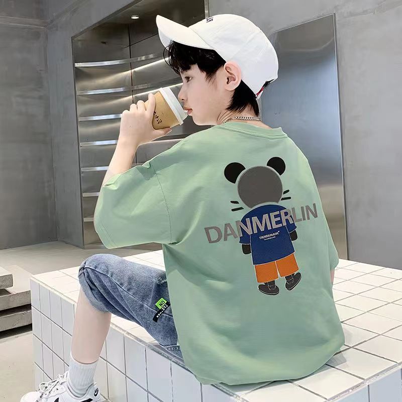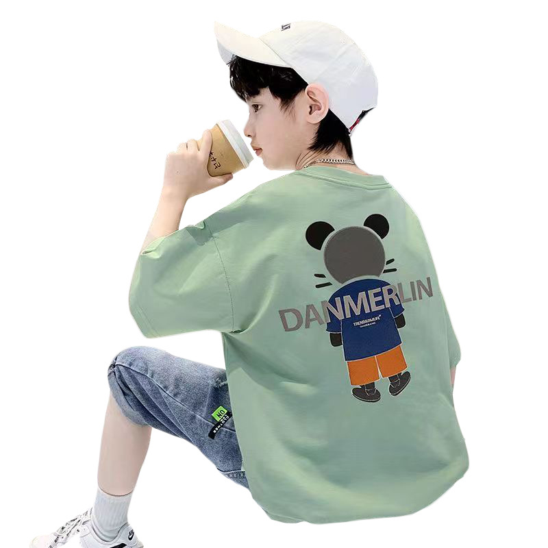 男童短袖纯棉t恤夏季童趣卡通休闲中大童半袖t男孩帅气宽松童装潮