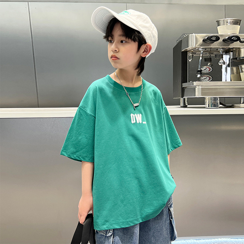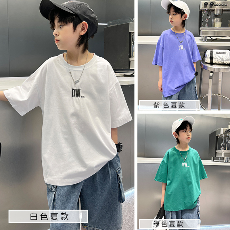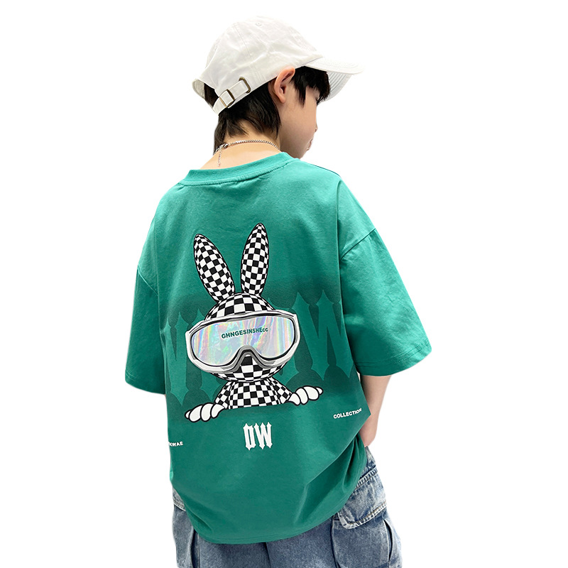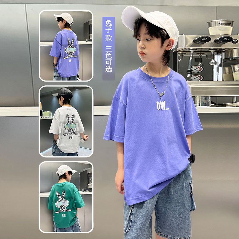 男童短棉质t恤新款卡通前后印花儿童t恤卡通宽松半袖上衣夏季童装