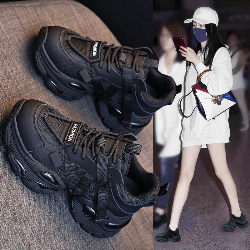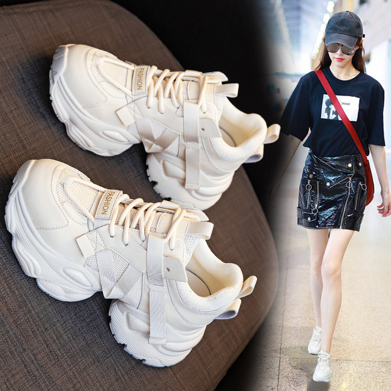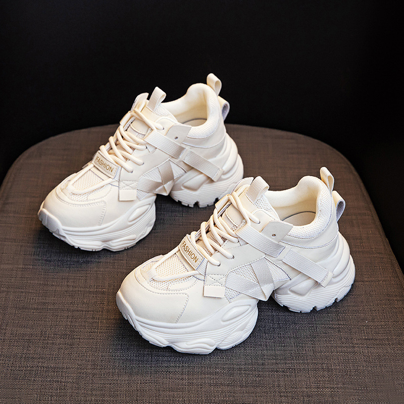 真皮厚底老爹鞋春季新款运动女士休闲鞋小个子松糕百搭女鞋子