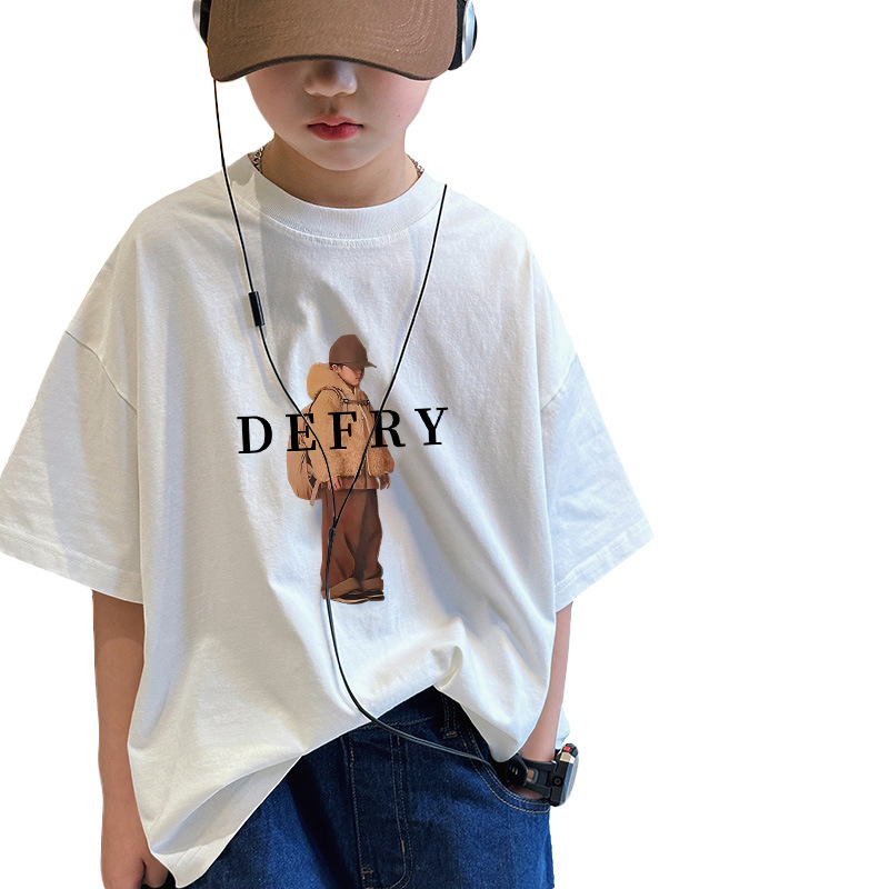 夏季新款小中大童帅气男孩t恤衫男童宽松短袖卡通儿童半袖打底衫