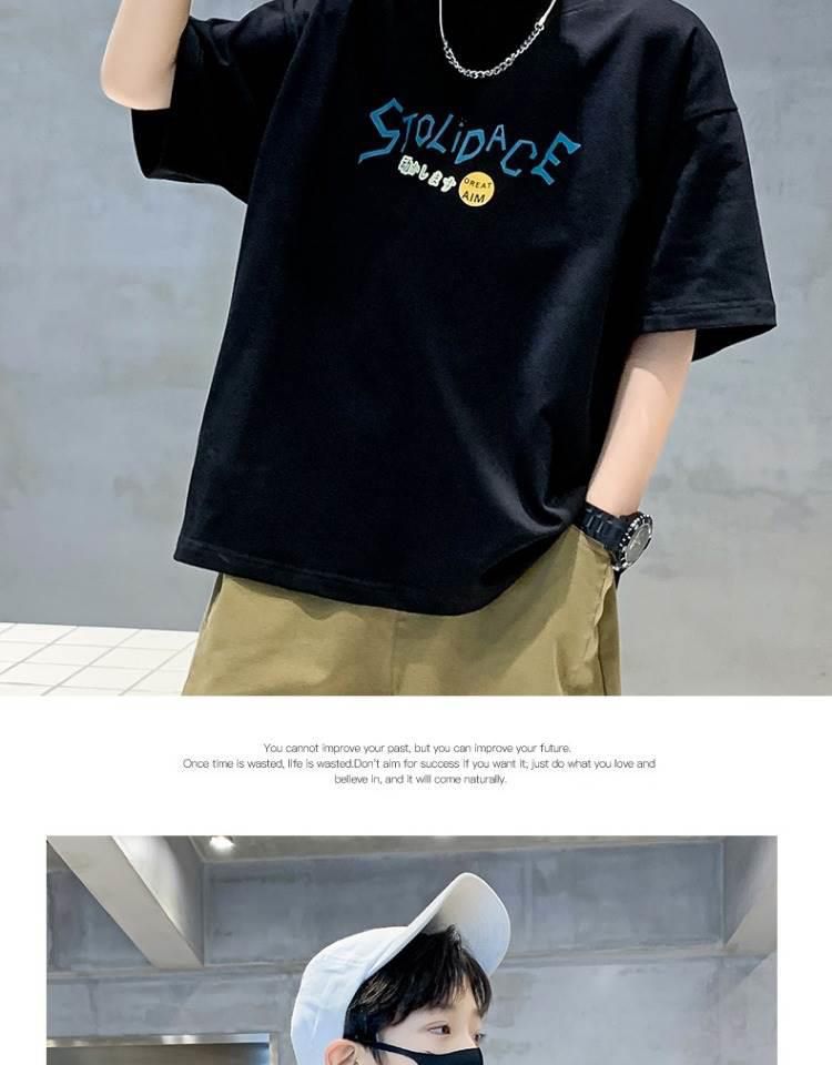 男童夏装短袖T恤新款前后印花中大童男孩夏季洋气棉质上衣夏