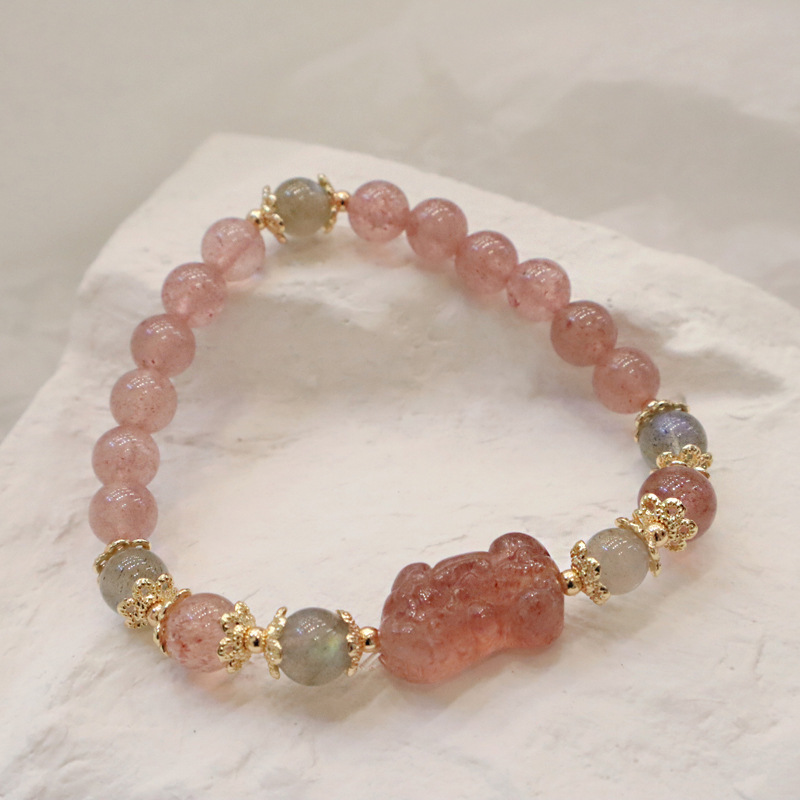 草莓晶手链女ins小众设计简约手饰气质简约草莓晶貔貅手串