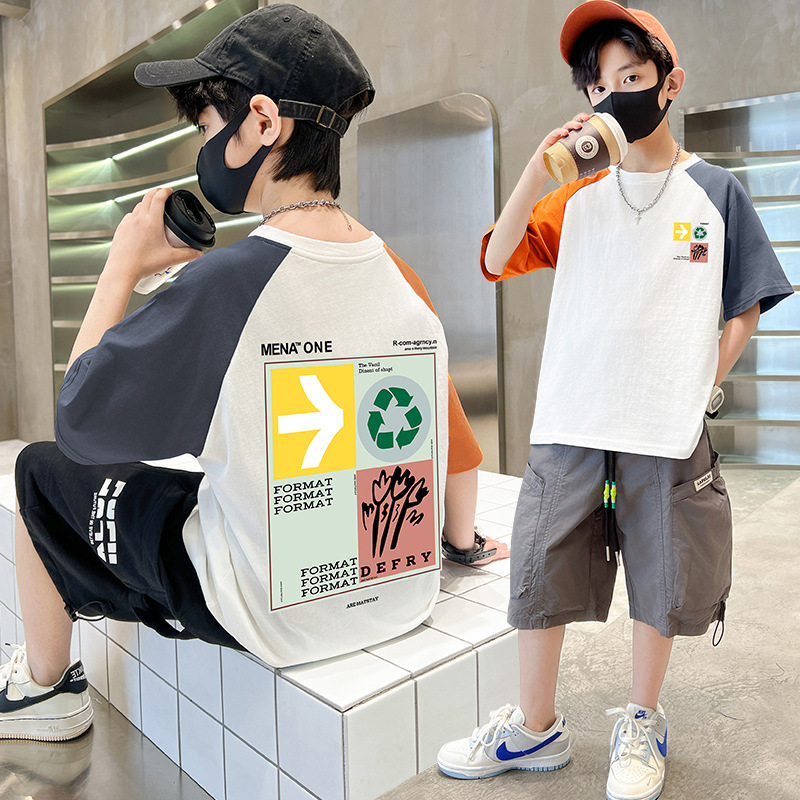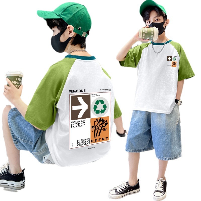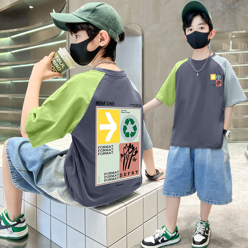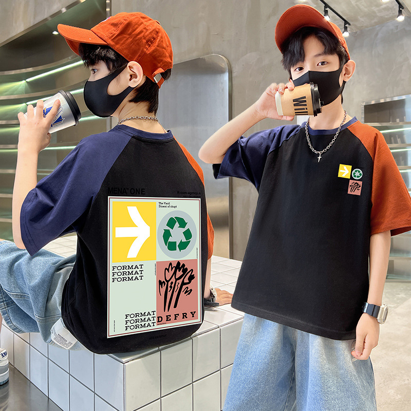 男童短袖T恤夏装童装新款宽松儿童中大童纯棉休闲夏上衣潮流