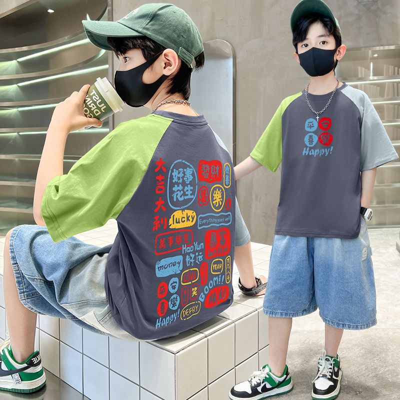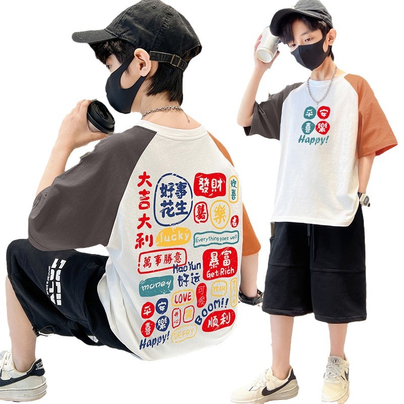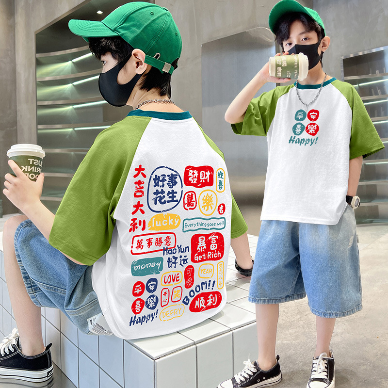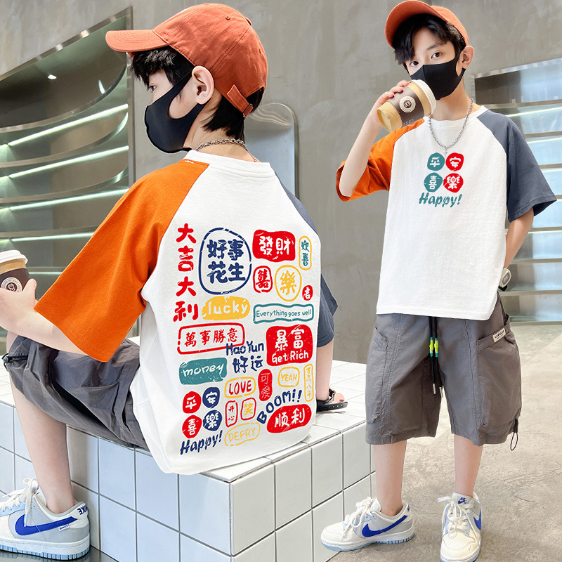 男童短袖T恤夏装童装新款宽松半袖儿童中大童纯棉夏上衣潮流