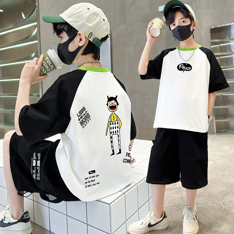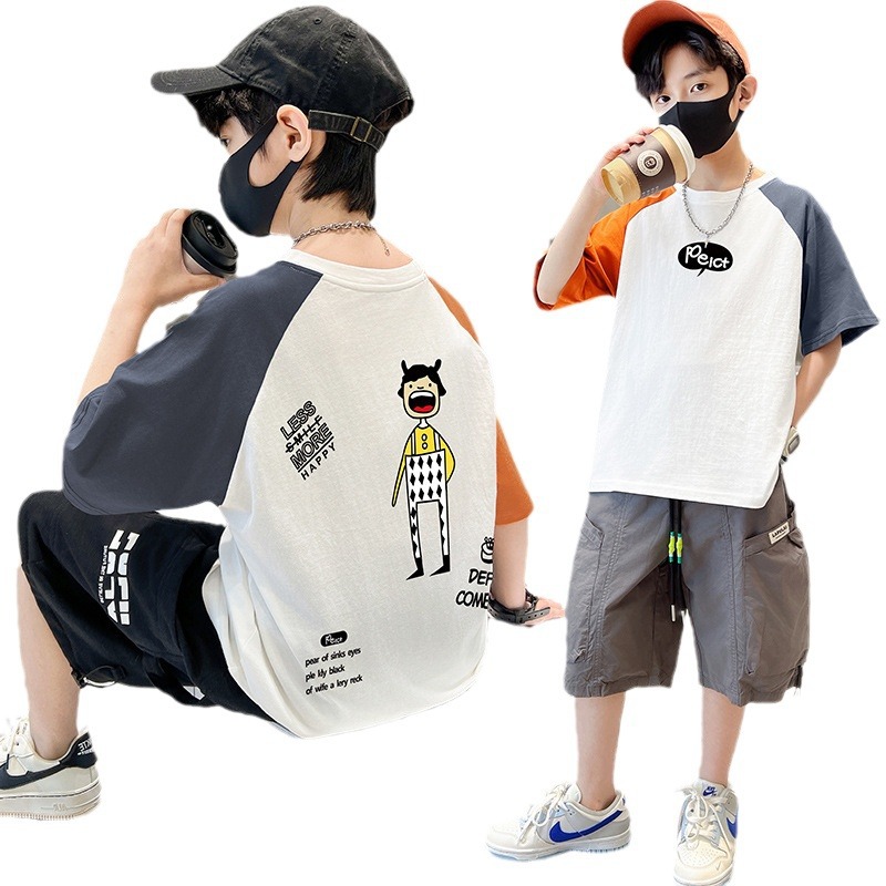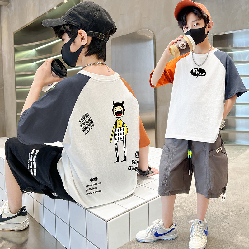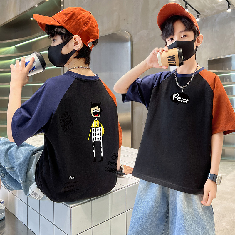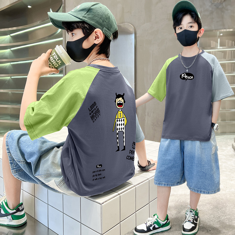 男童短袖T恤夏装童装新款宽松帅气儿童中大童纯棉夏季上衣潮