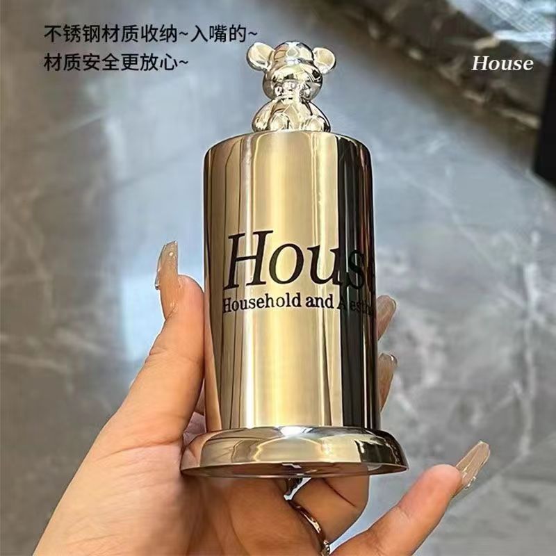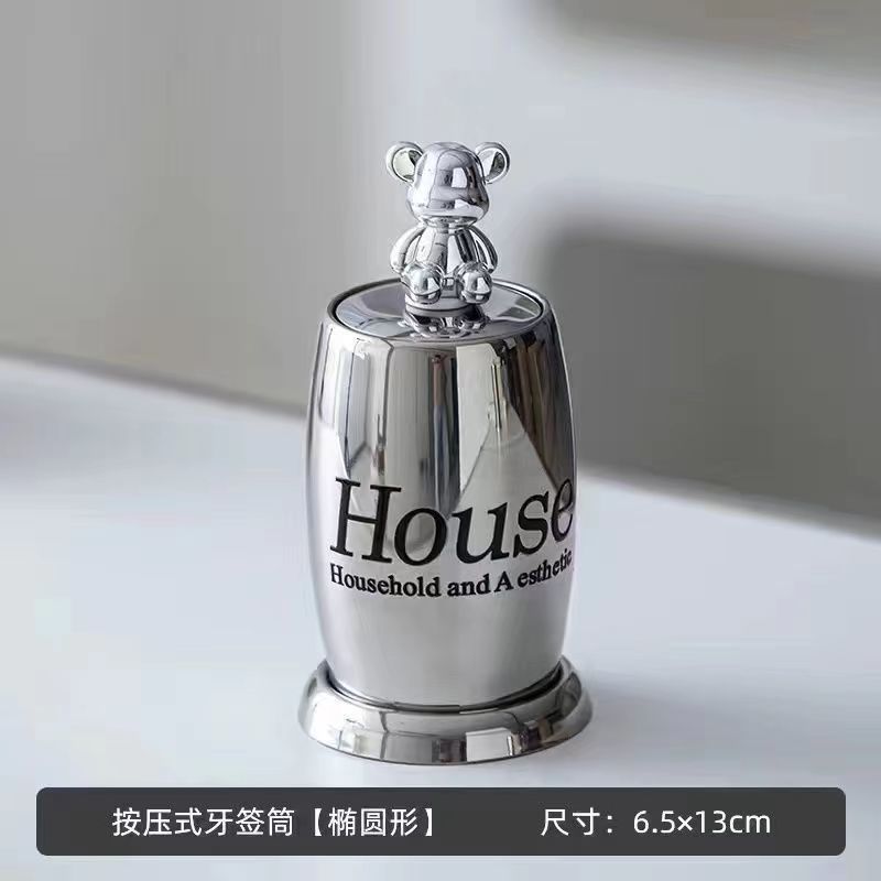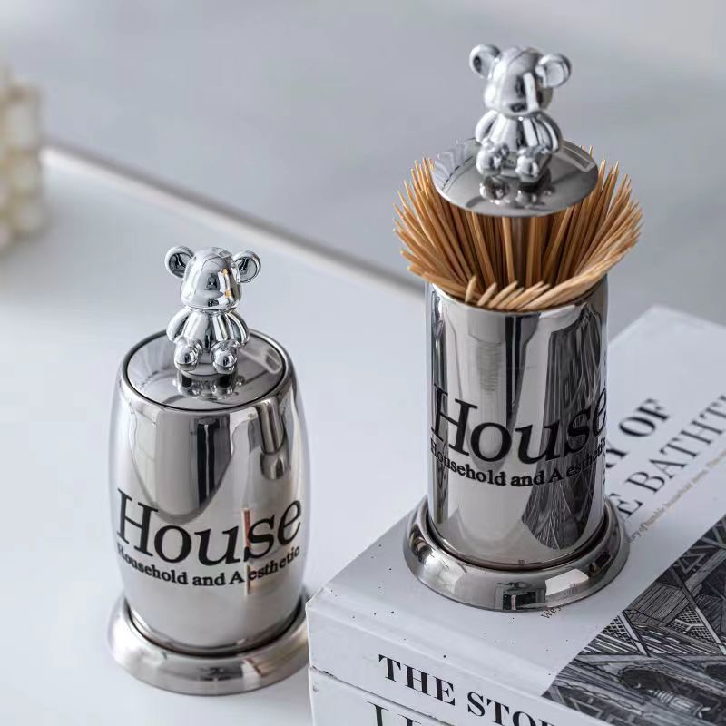 家用轻奢小熊牙签筒不锈钢酒店个性创意高颜值牙签盒暴力熊牙签罐