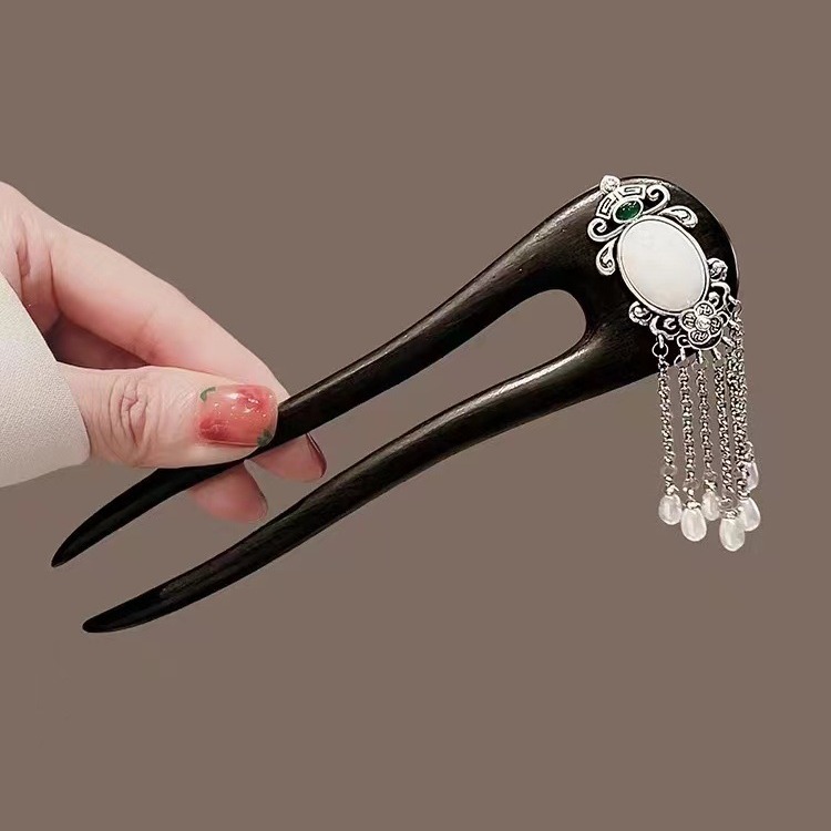 ins新中式藏式古典发簪古风檀木U形簪子古装发饰发钗步摇复古盘发