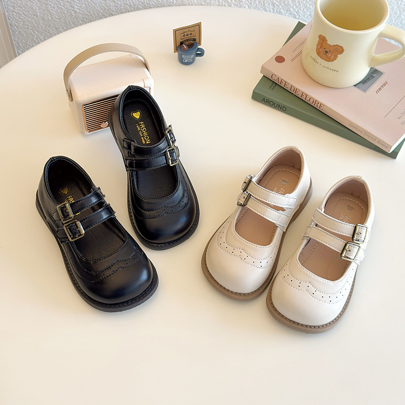儿童皮鞋女春秋新款软底圆头舒适双带魔术贴女童时尚百搭洋气单鞋