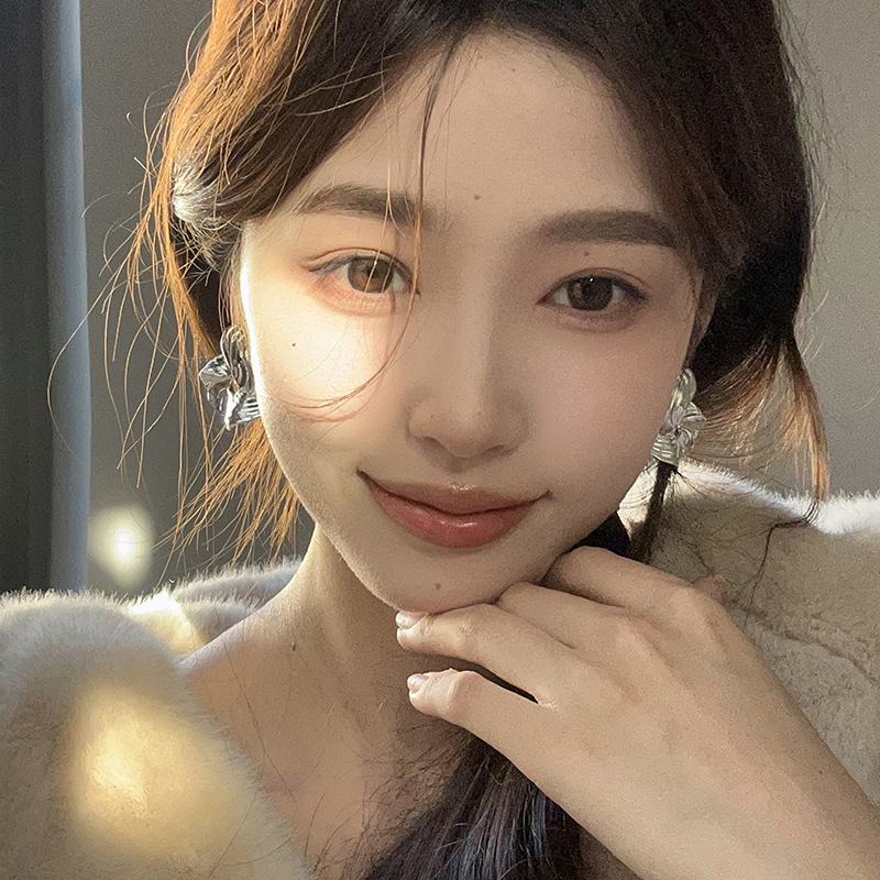 金属冷淡风抽象造型感耳钉小众夸张不规则纹理圆形耳环高级感耳饰