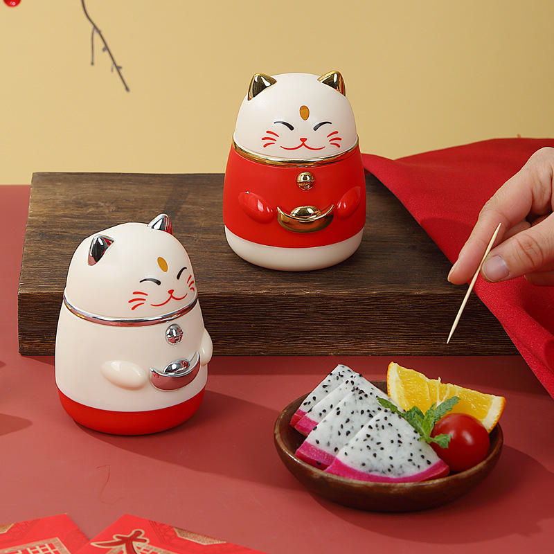 牙签盒高颜值国潮卡通创意按压式自动弹出招财猫牙签罐家用牙签筒