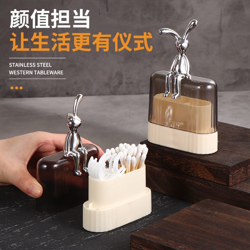 奶油风牙签筒轻奢ins风桌面收纳牙线盒棉签瓶分格两用牙签盒