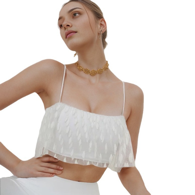 跨境欧美裸感时尚运动内衣网纱轻纱瑜伽服细吊带短款上衣健身服