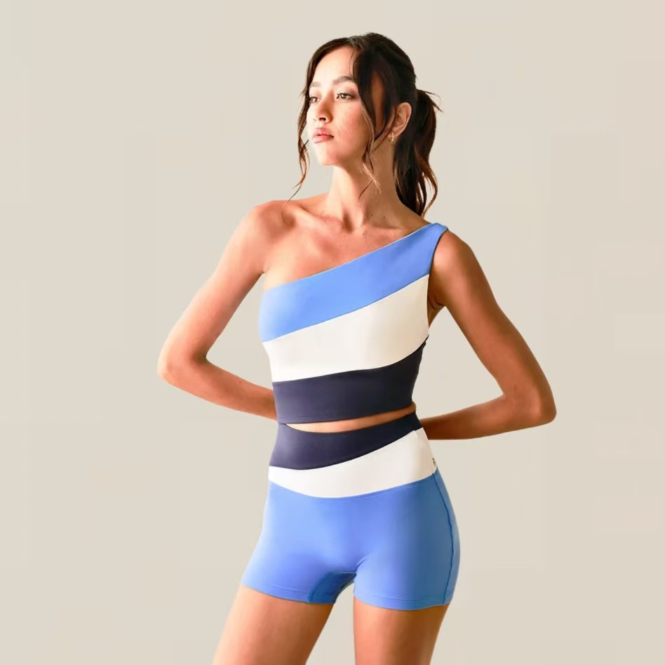 新款艺术感不对称撞色运动内衣健身美背吊带瑜伽背心短裤