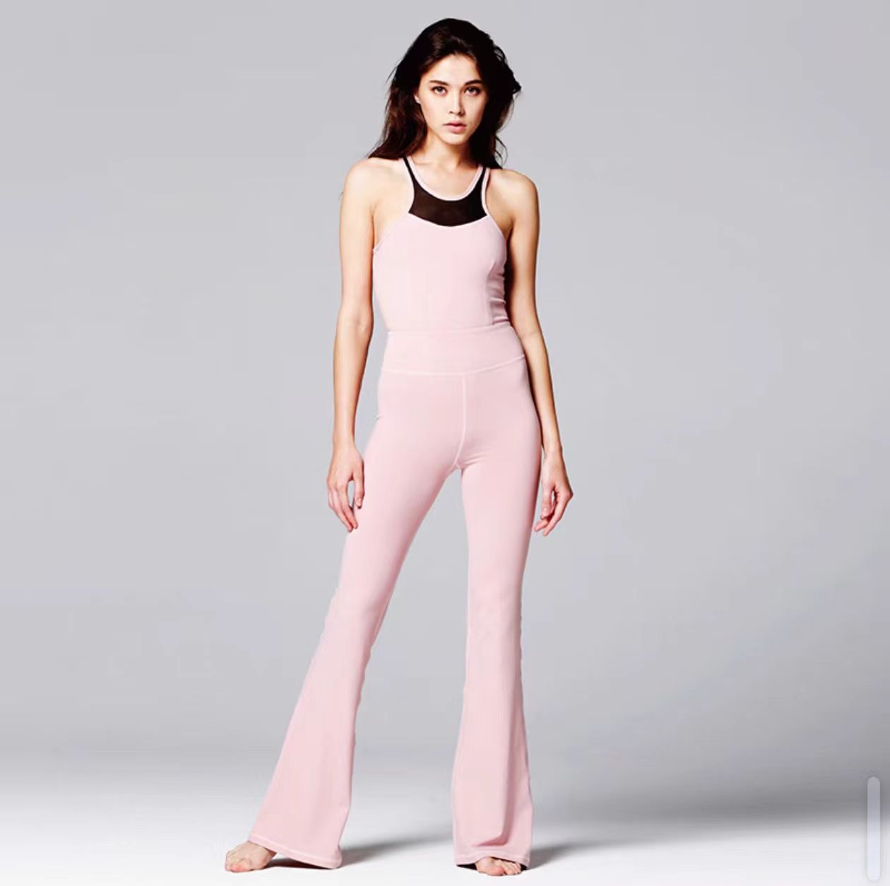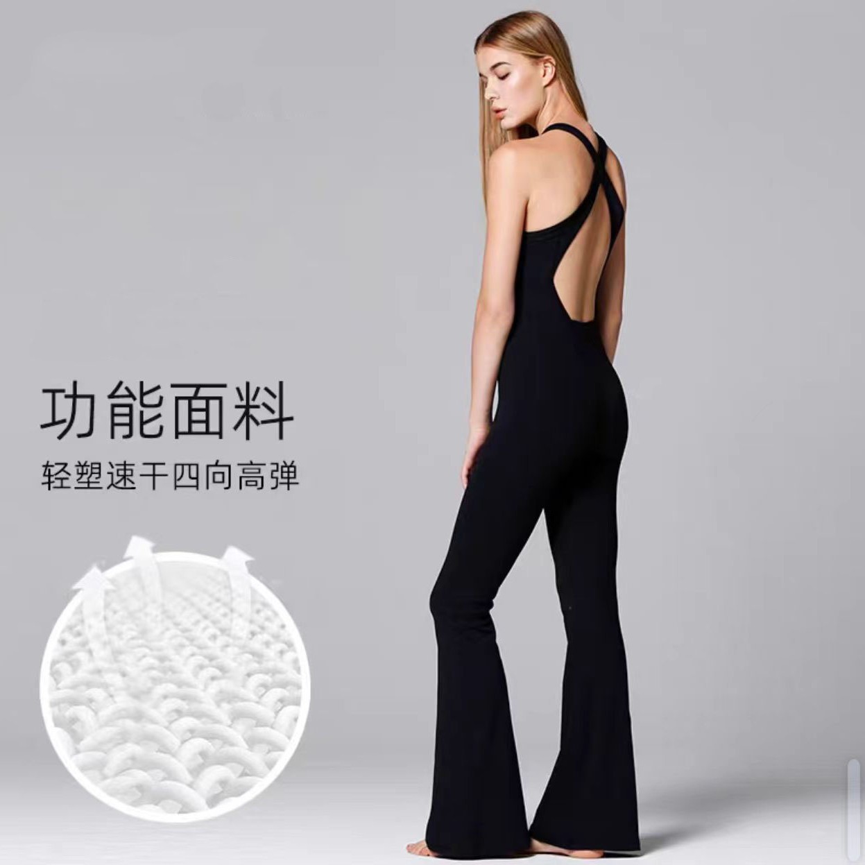欧美运动瑜伽连体服女美背拼色连体衣裸感运动健身显瘦阔腿喇叭裤