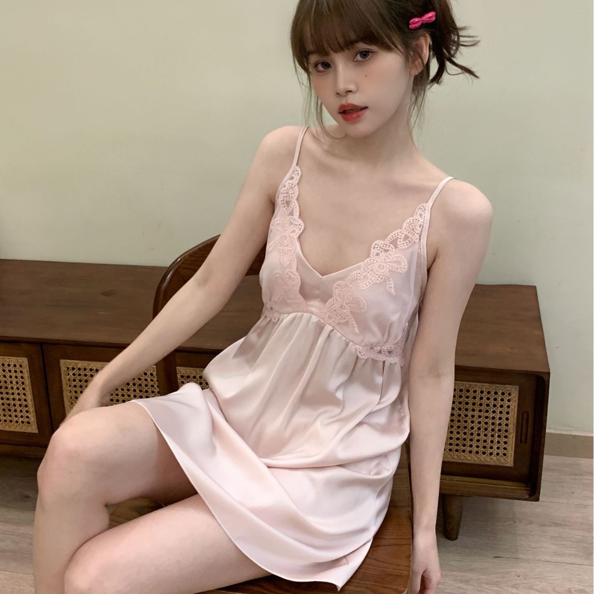 性感吊带睡裙女夏季冰丝法式带胸垫睡衣高级感日系少女家居服纯欲