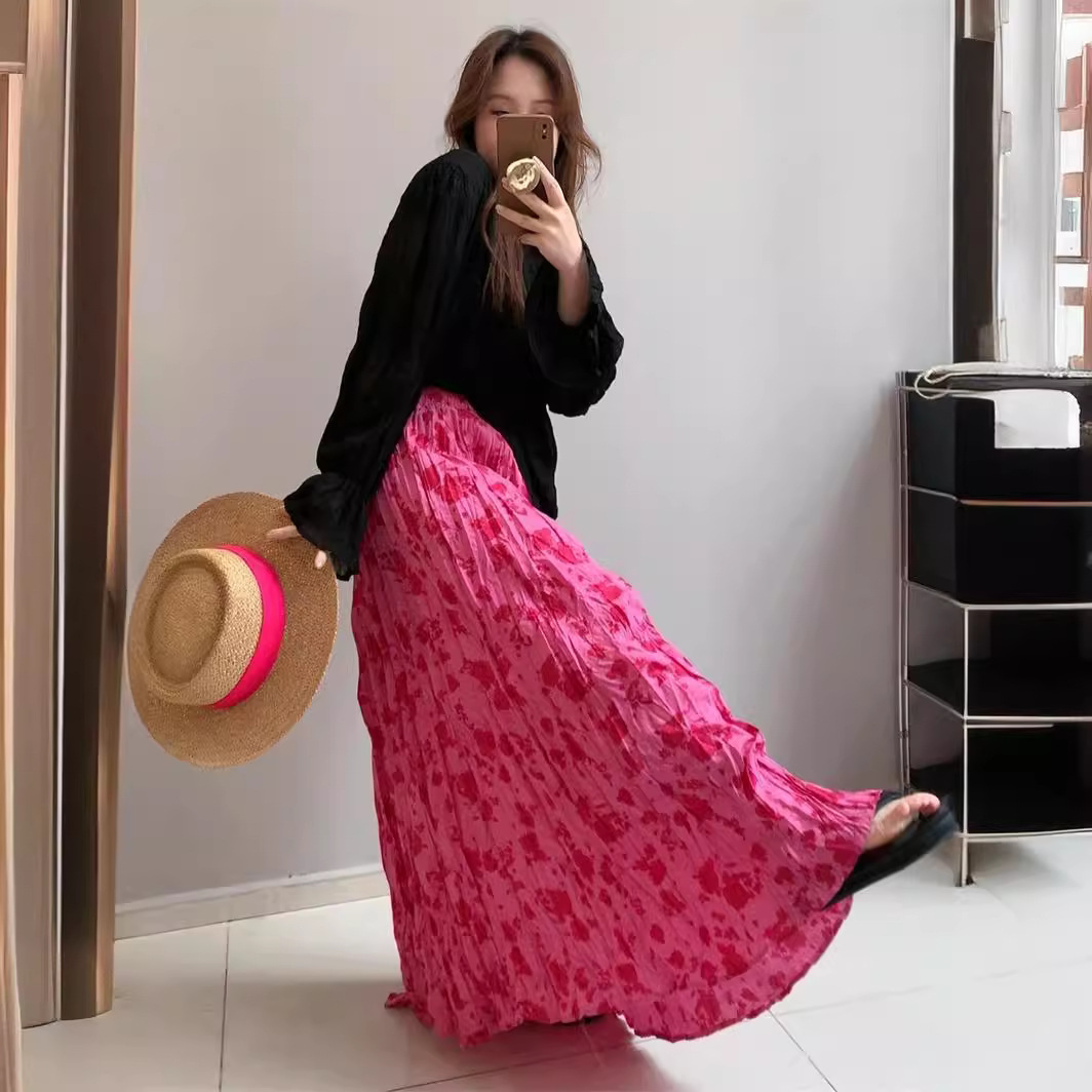 碎花半身裙女春夏季新款法式温柔高腰a字中长款雪纺粉色裙子