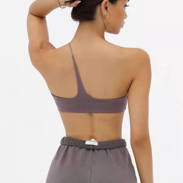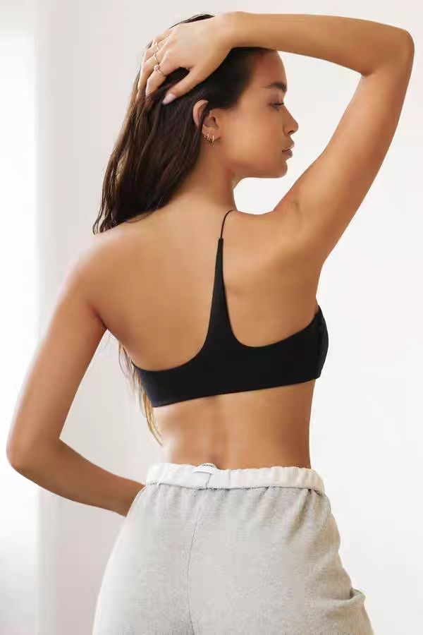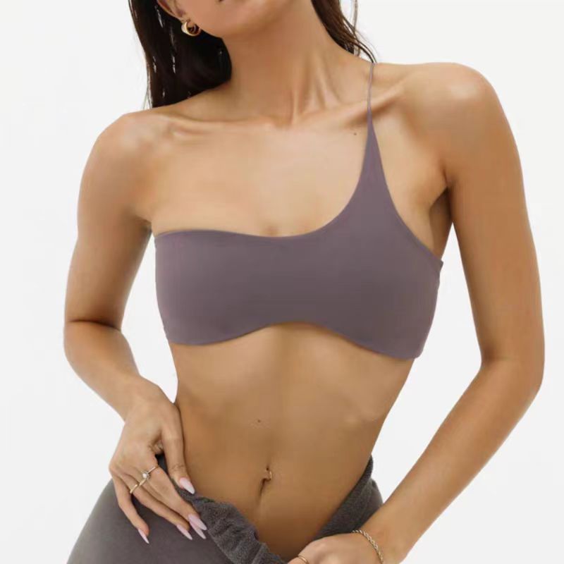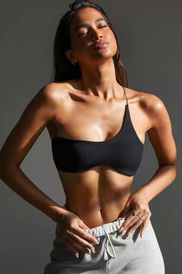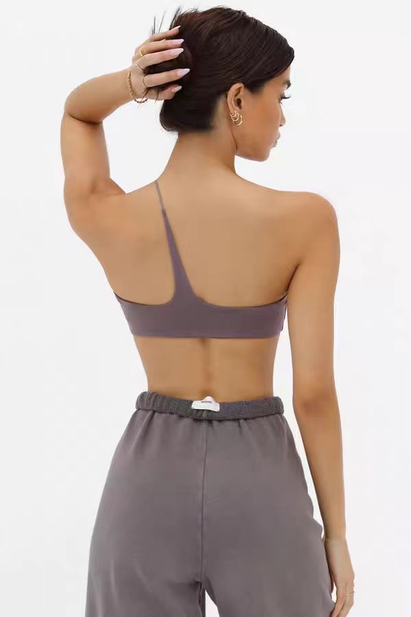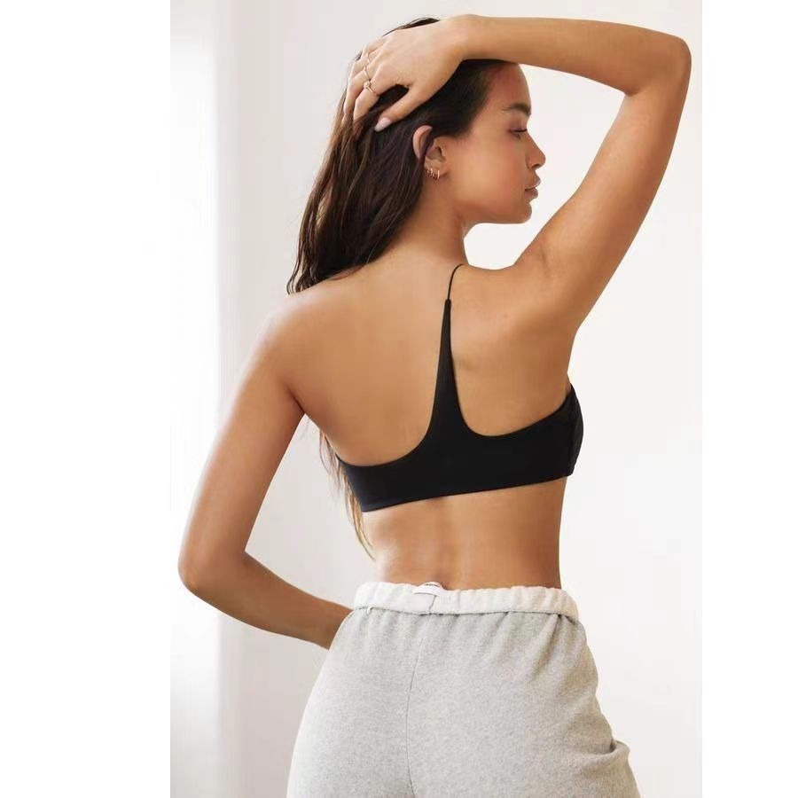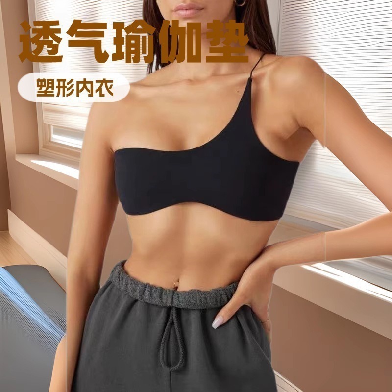 欧美时尚夏季弧形瑜伽服上衣 女 修身运动跑步带胸垫文胸