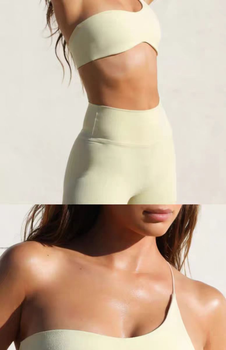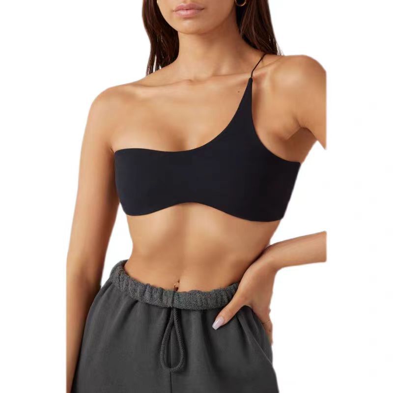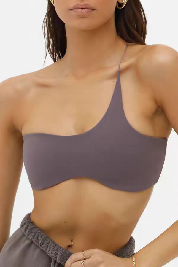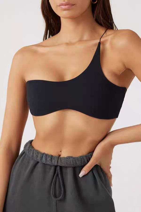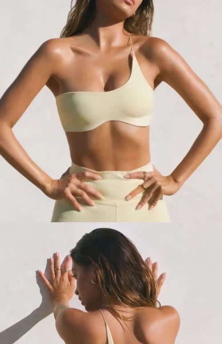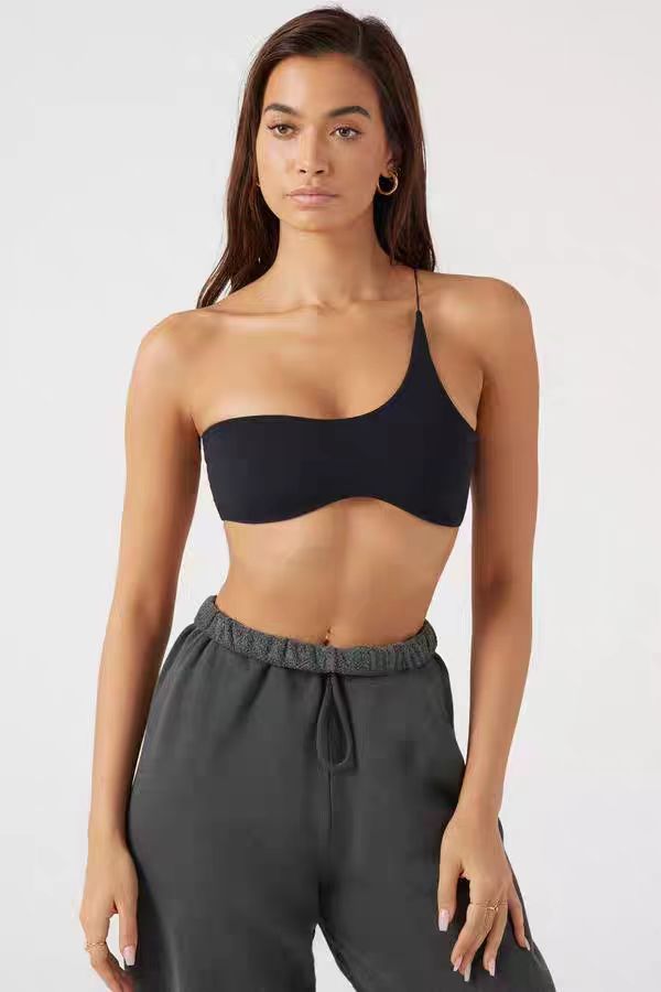 欧美时尚夏季弧形瑜伽服上衣 女 修身运动跑步带胸垫文胸