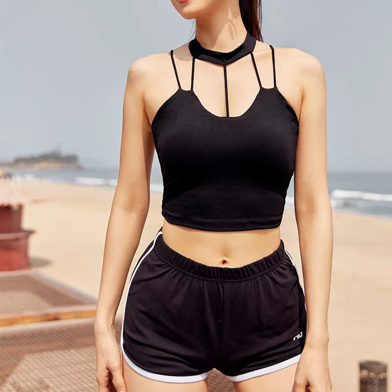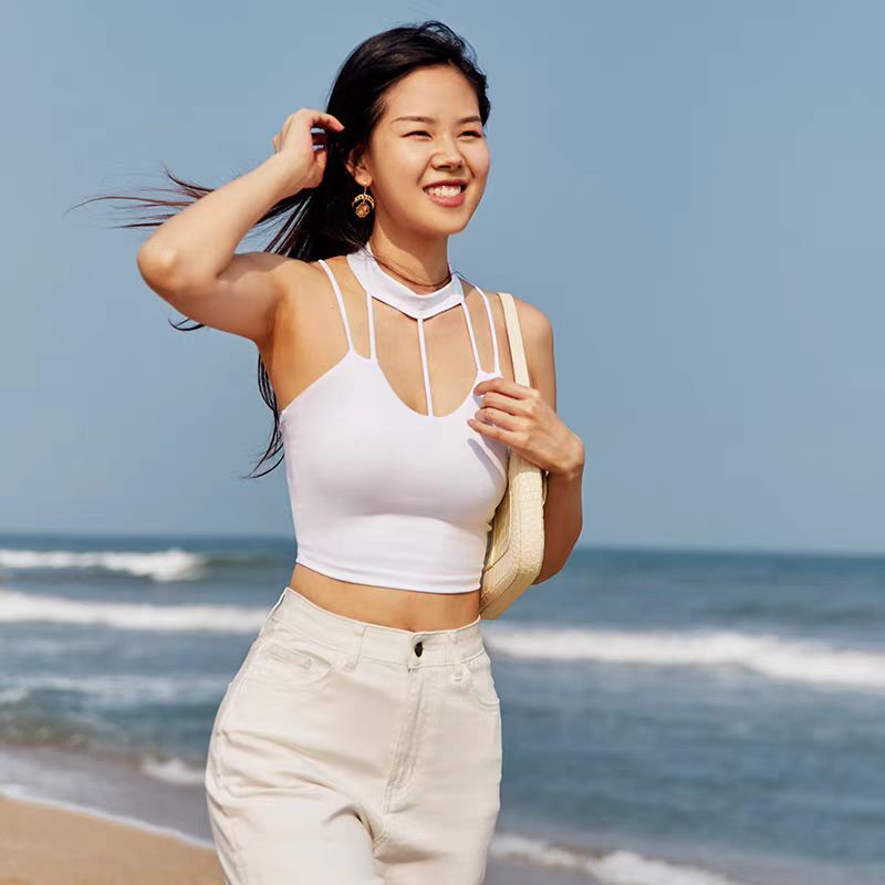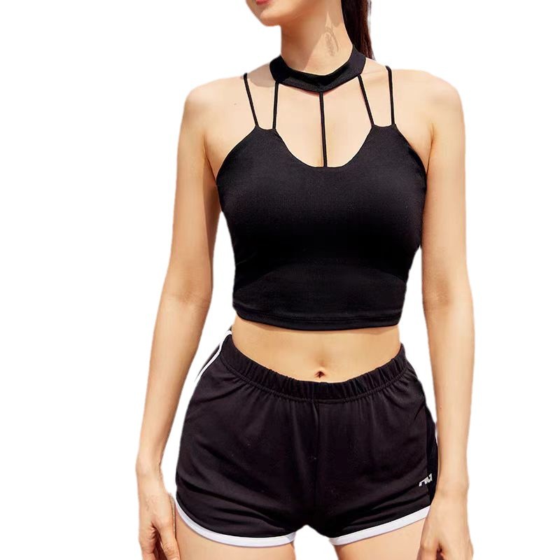 跨境性感辣妹细肩带挂脖吊带可外穿运动瑜伽健身背心修身露背上衣
