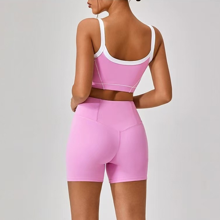 欧美裸感紧身健身速干瑜伽服户外运动内衣女美背吊带套装提臀健身