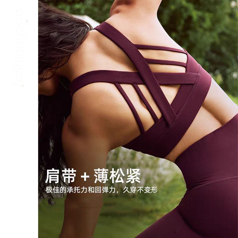 跨境透气舒适运动内衣设计感美背背心带胸垫防震聚拢健身瑜伽服