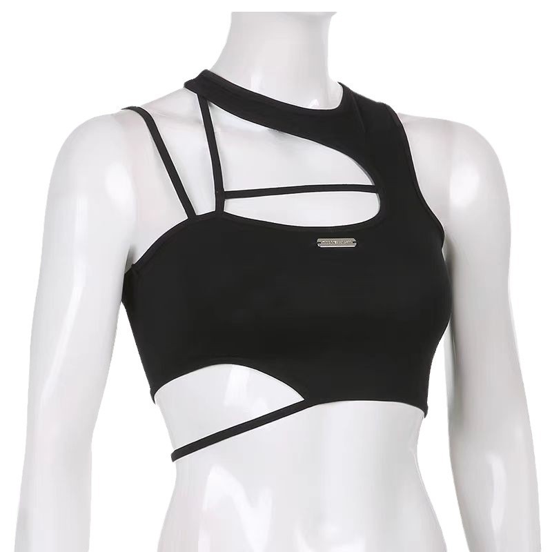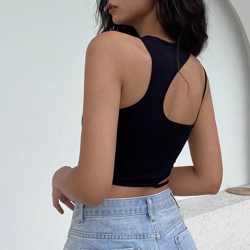 跨境欧美性感辣妹露脐短款上衣女设计感运动内衣舒适美背背心吊带