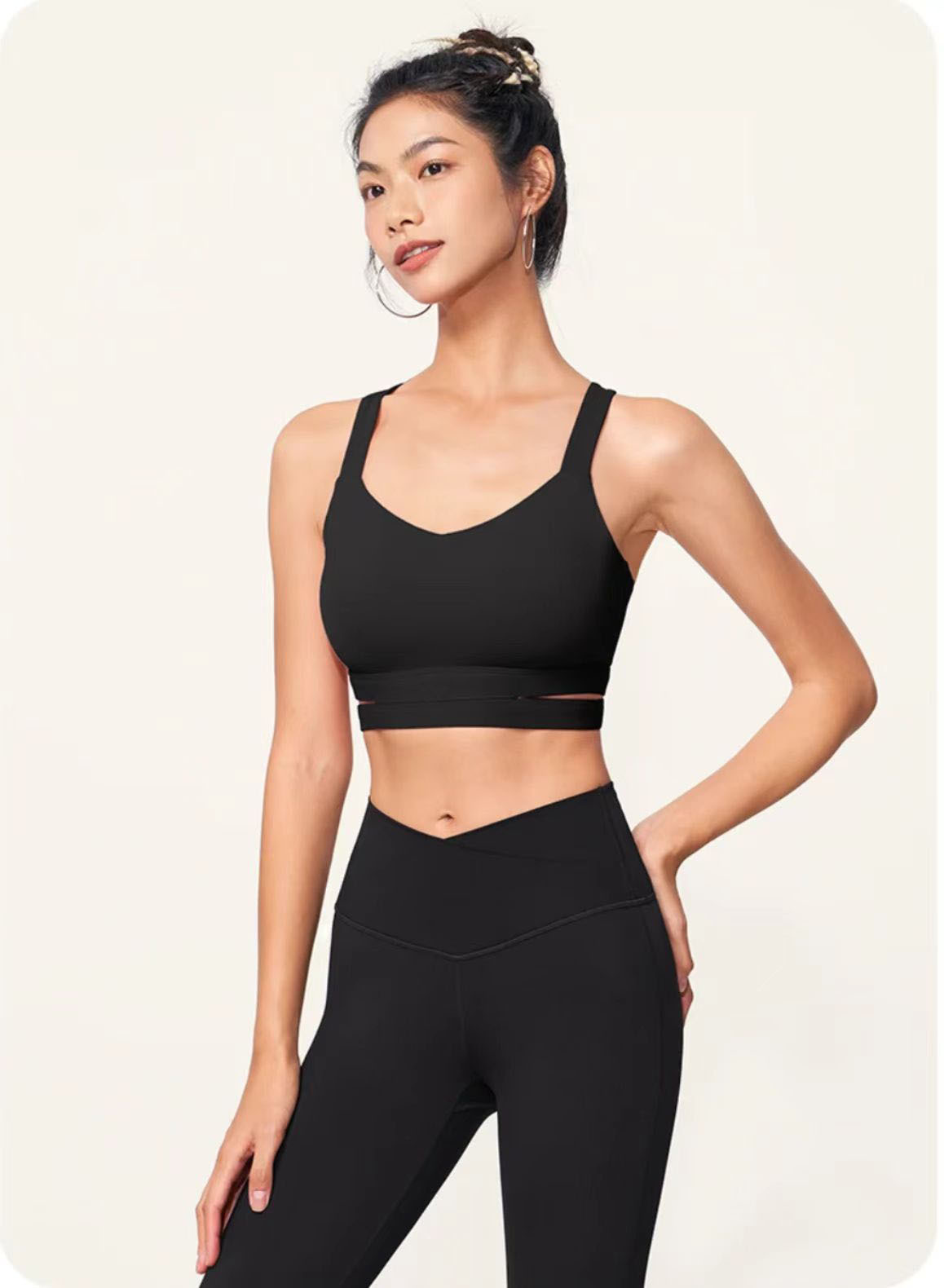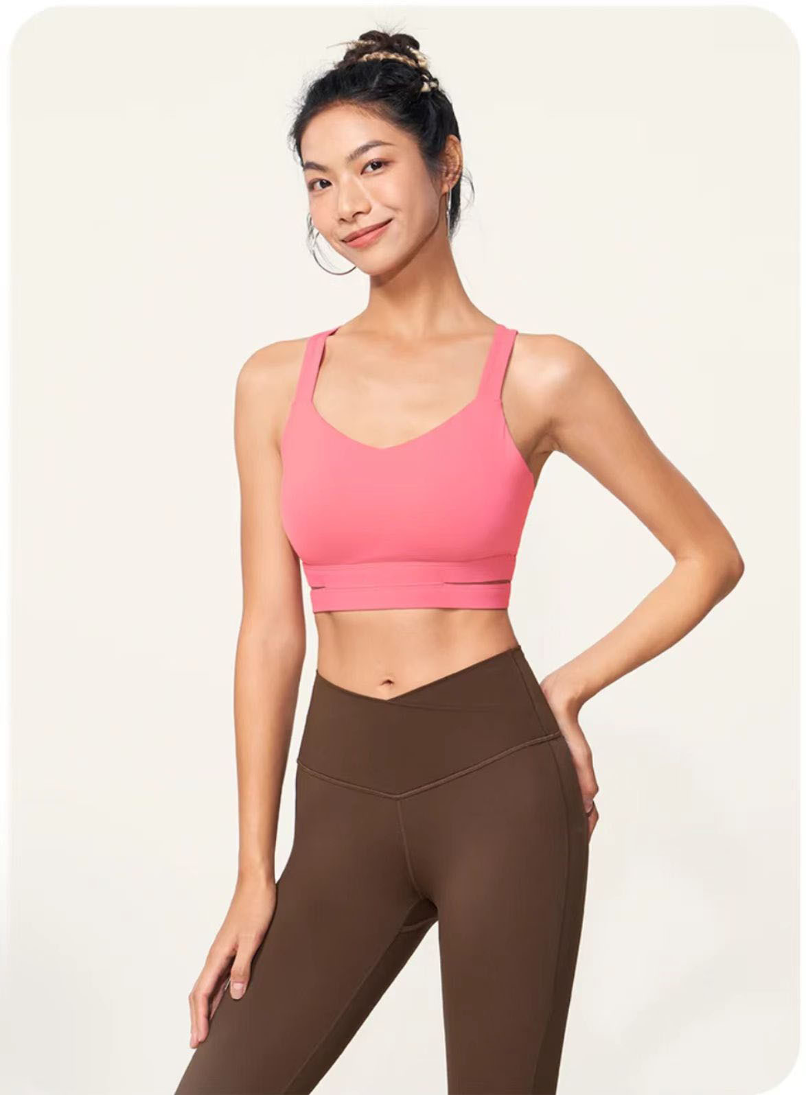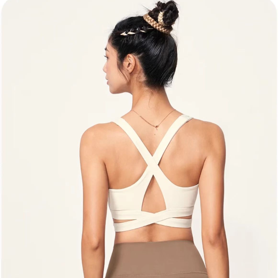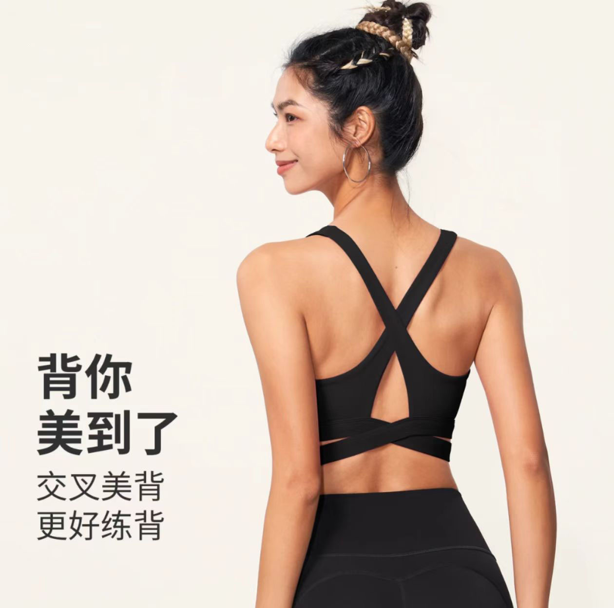 跨境透气舒适无痕运动内衣设计感美背背心带胸垫防震聚拢健身服