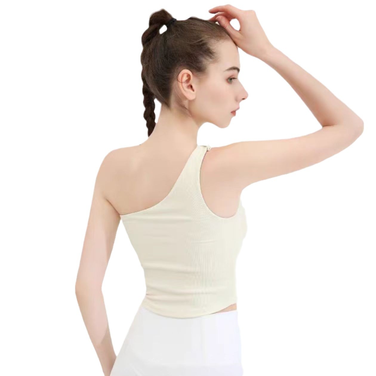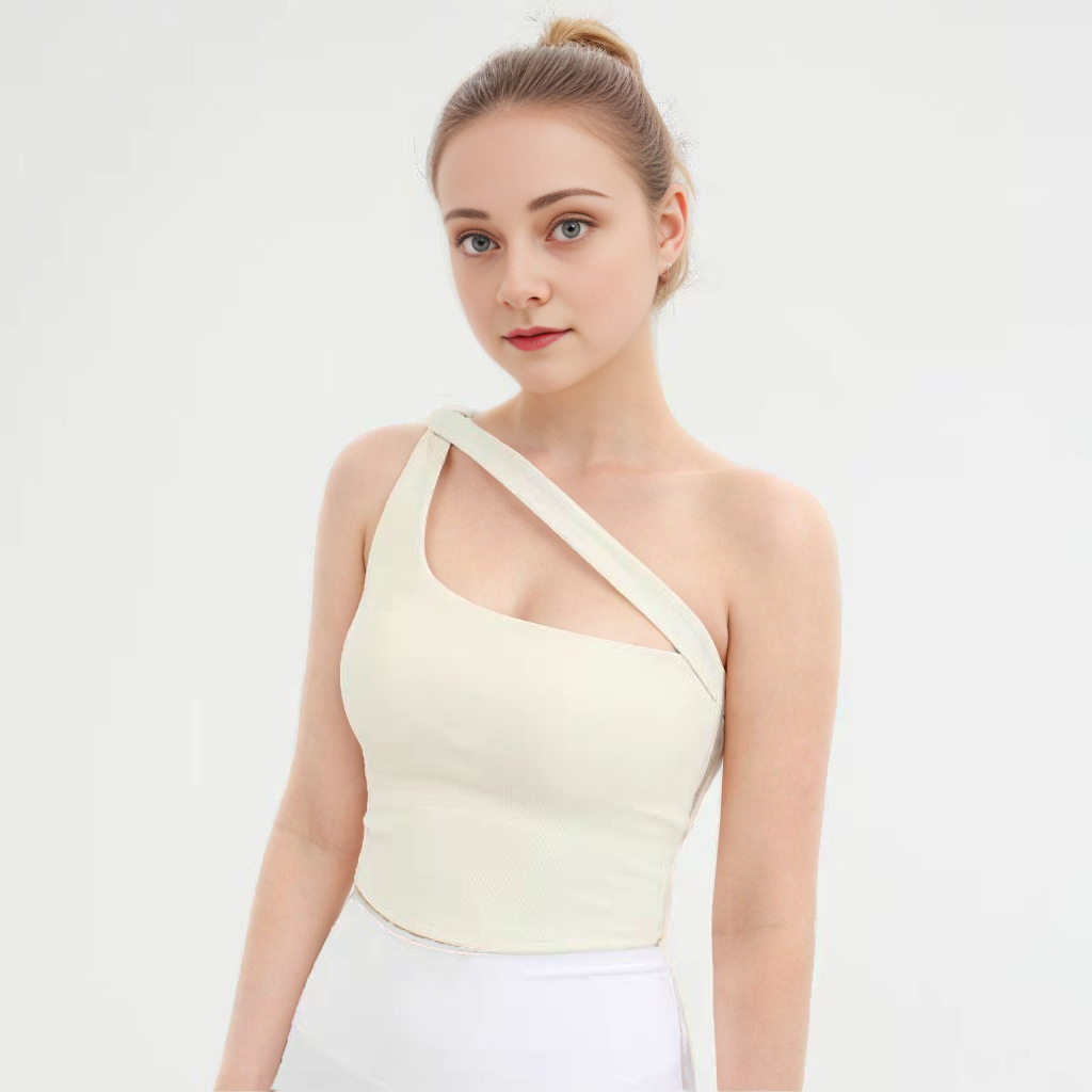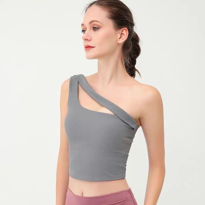外贸不规则坑条单肩瑜伽上衣女吸湿排汗健身跑步舞蹈运动美背背心