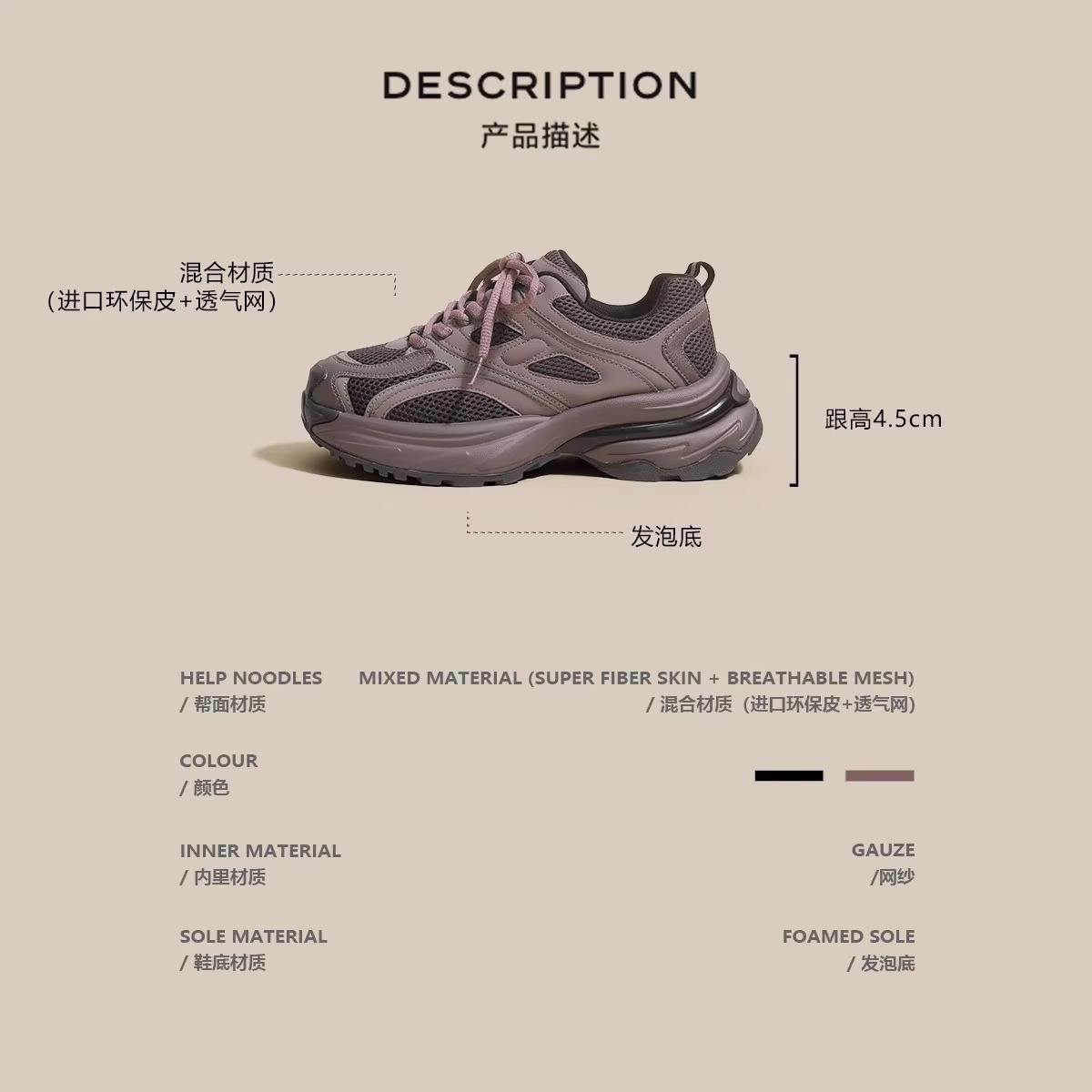 小怪兽厚底老爹鞋女年新款网纱系带休闲鞋时尚复古百搭运动鞋