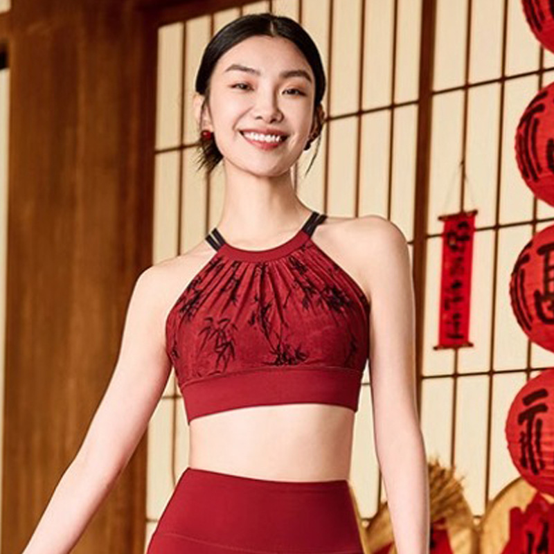外贸欧美跨境时尚新中式设计感时尚撞色挂脖美背运动内衣文胸