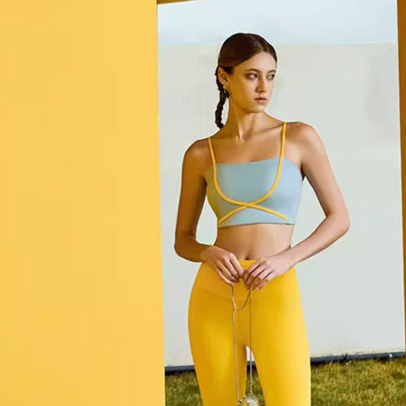 时尚美背背心时尚性感撞色运动文胸内衣瑜伽服防震健身带胸垫套装
