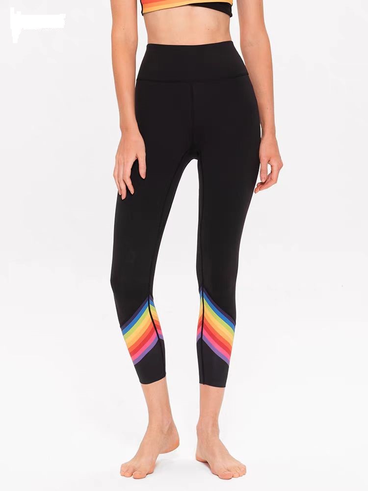 欧美彩虹撞色性感聚拢内衣运动文胸背心瑜伽服套装健身裤