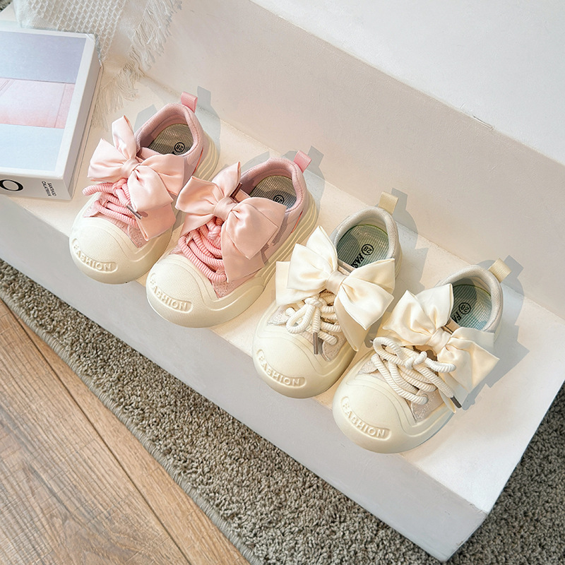 女童板鞋2025春秋季新款儿童蝴蝶结公主运动鞋学生软底休闲小白鞋
