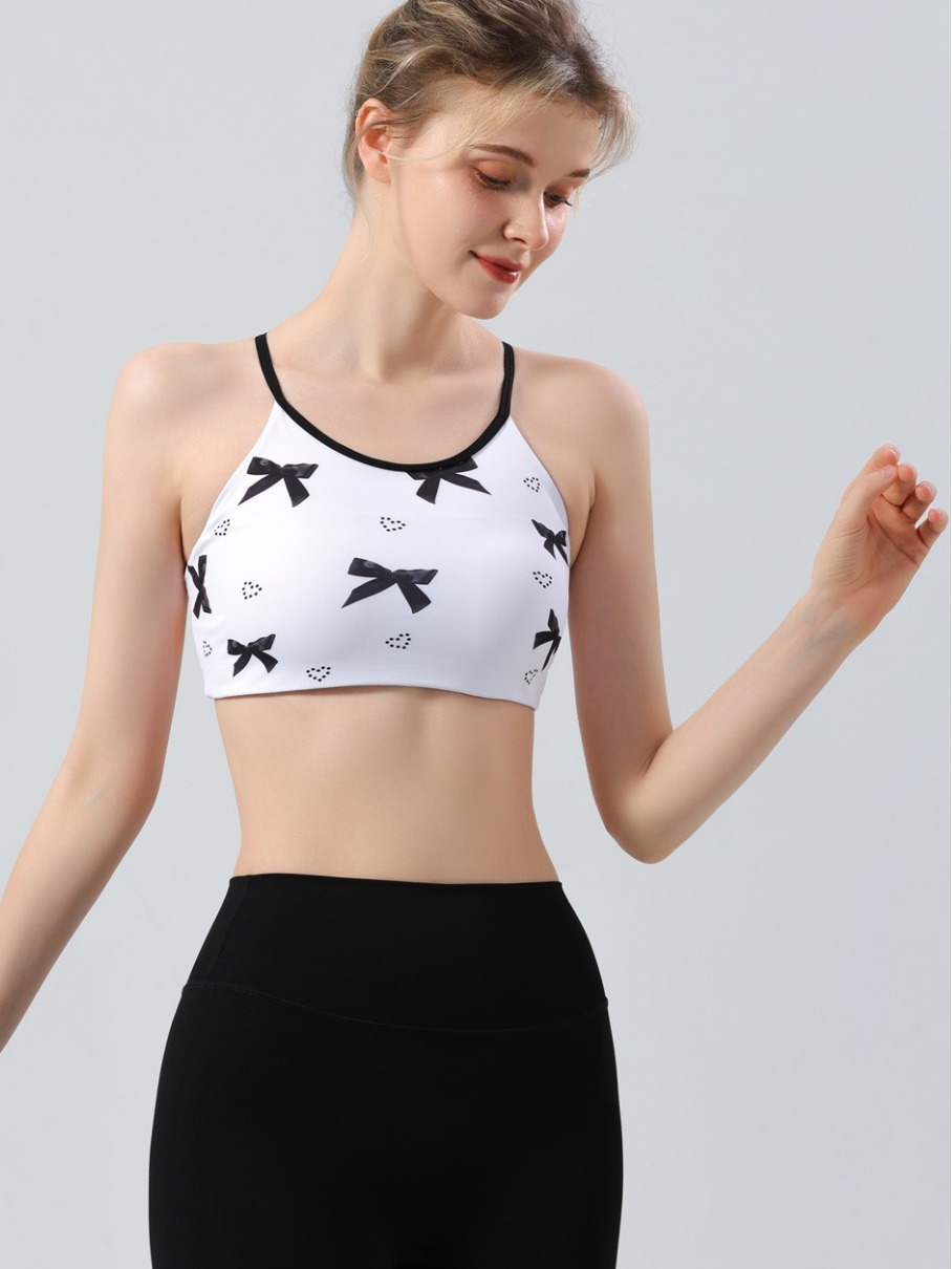 新款瑜伽蝴蝶印花健身美背套装瑜伽服背心女带胸垫运动文胸长裤