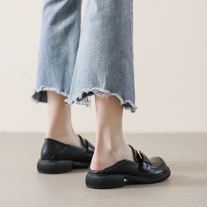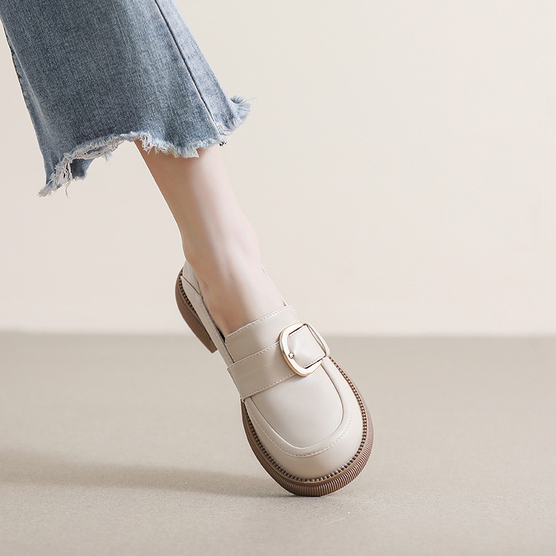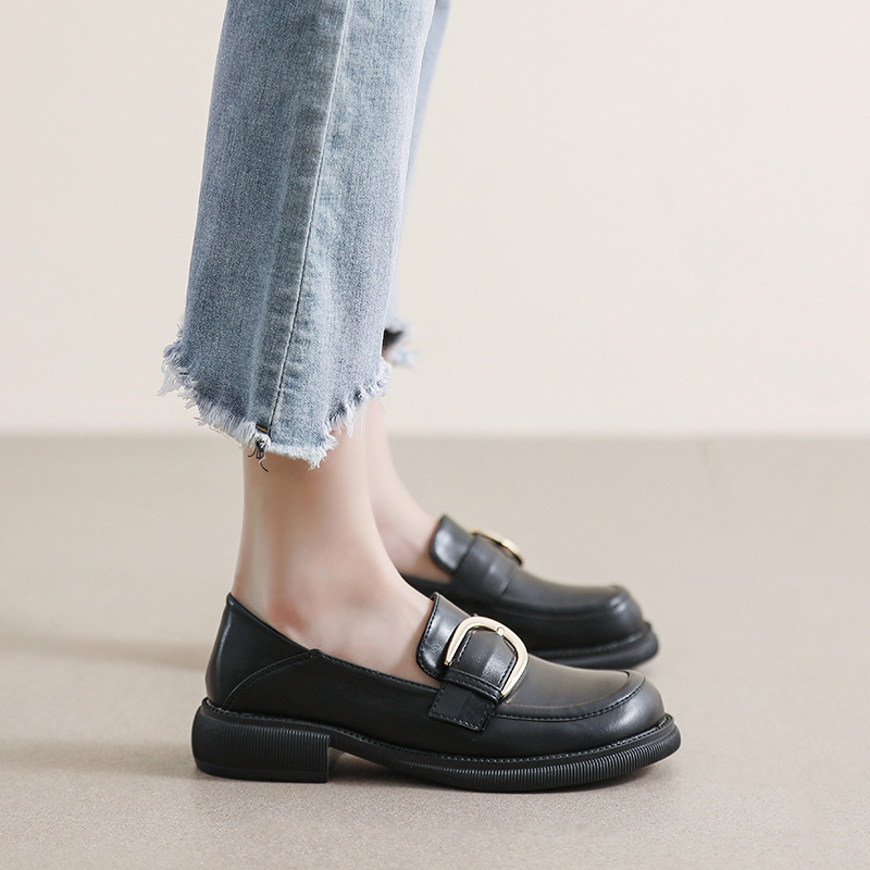 威威女郎 600-39厚底乐福鞋女秋百搭英伦风小皮鞋粗跟一脚蹬单鞋