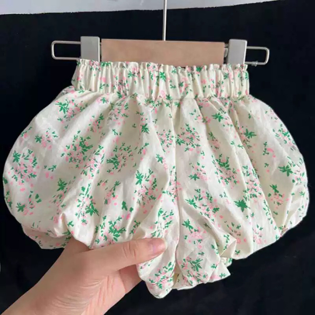 中小童短裤女宝宝夏季可爱甜美松紧短裤清新碎花花朵裤女孩花苞裤