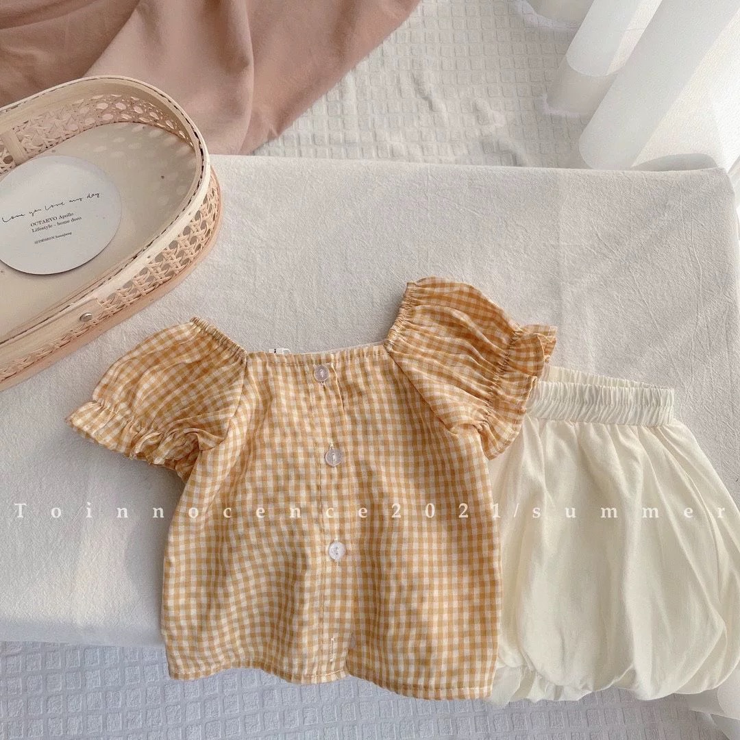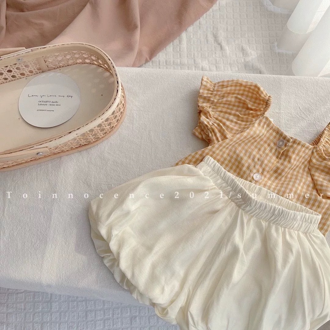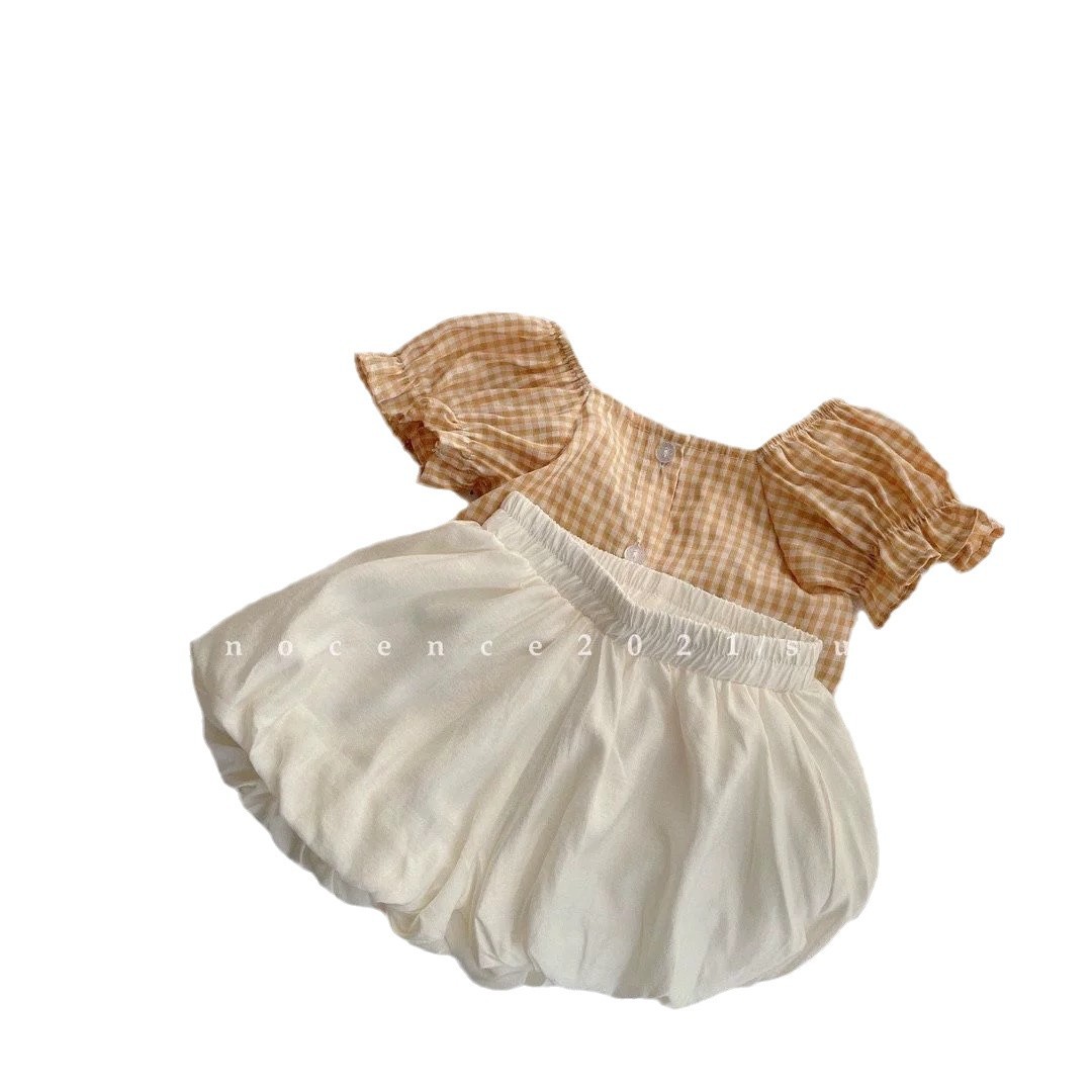 女宝宝洋气时髦套装夏装新款韩版女童夏季上衣花苞灯笼短裤两件套