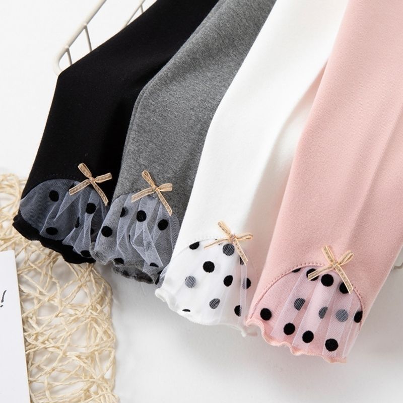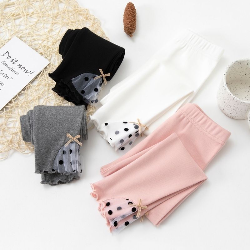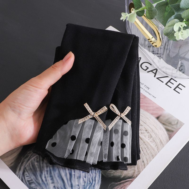 童裤春季女童打底外穿洋气韩版童装蝴蝶结蕾丝花边儿童修身长裤子