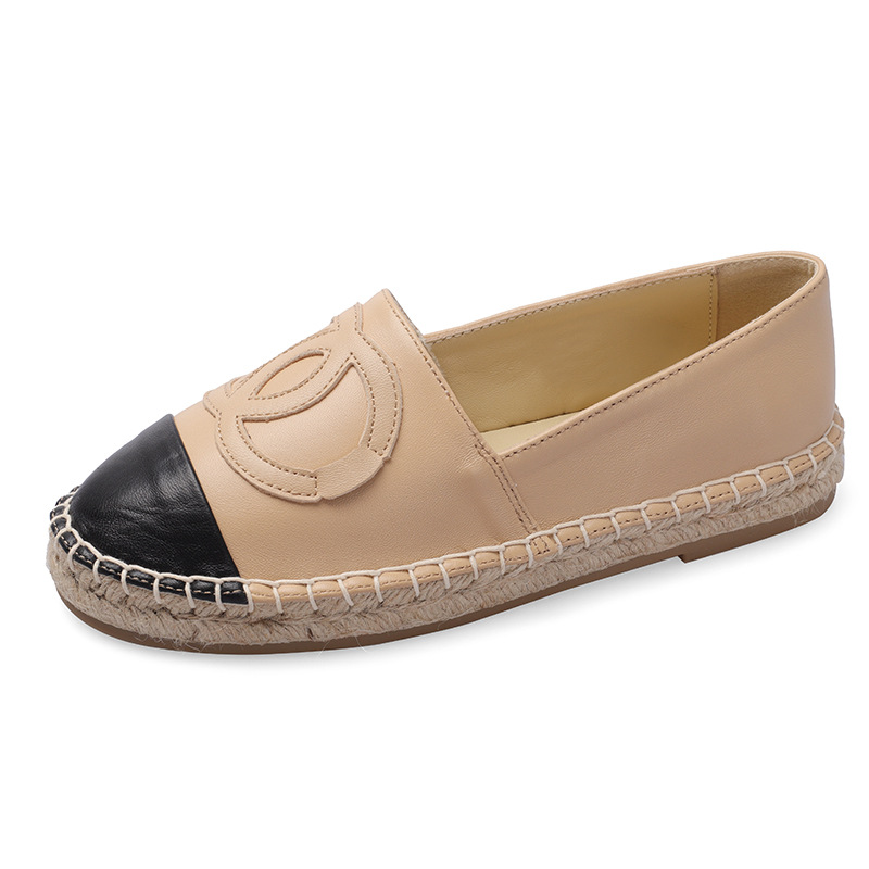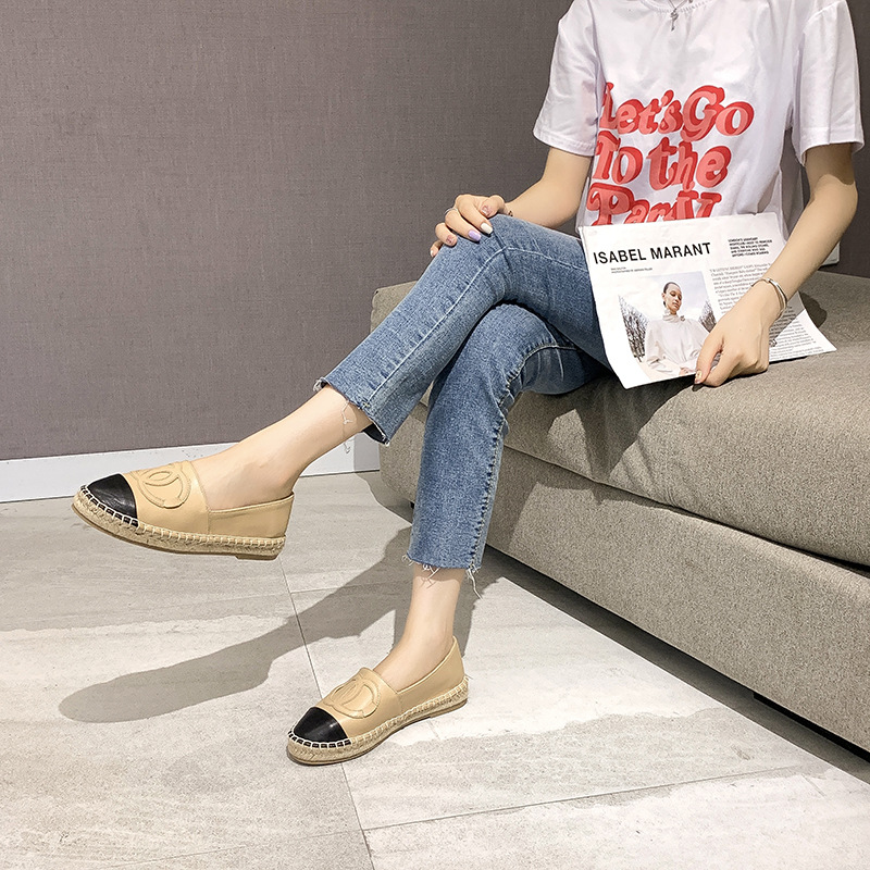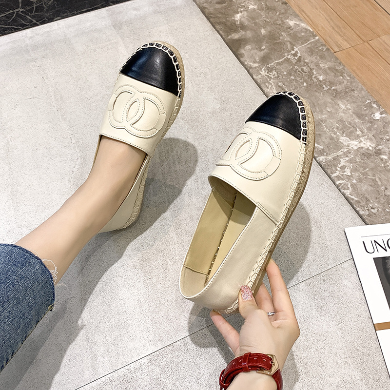 头层羊皮小香风渔夫鞋春季新款圆头浅口平底单鞋女厚底乐福鞋