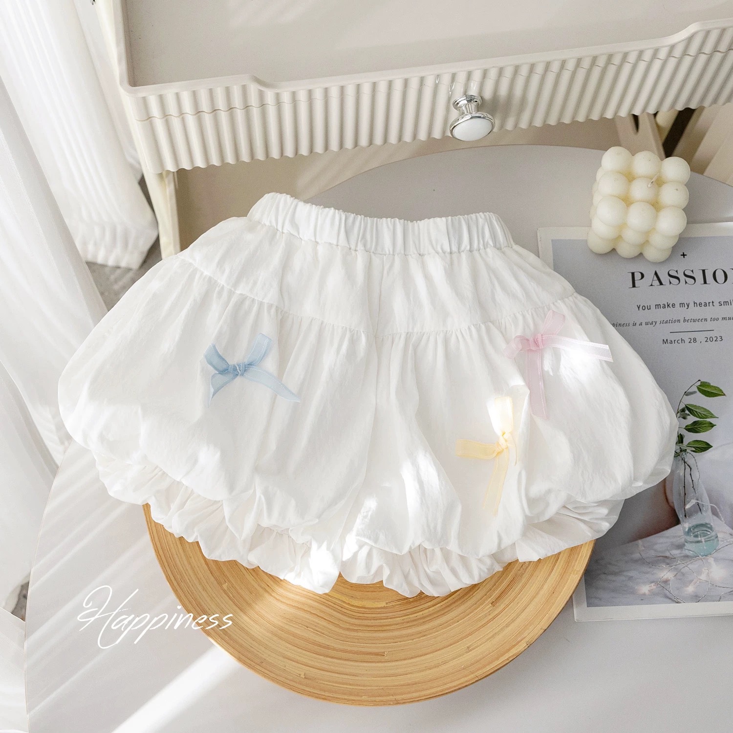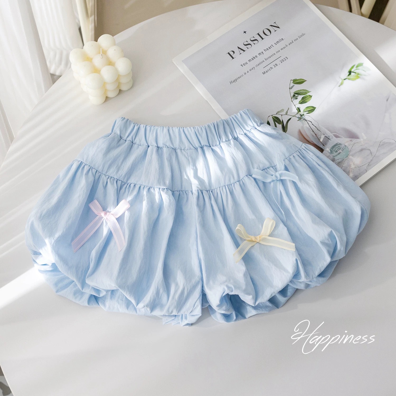 小女孩夏季短裤韩版小清新纯色蝴蝶结花苞裤女宝夏款甜美百搭裤